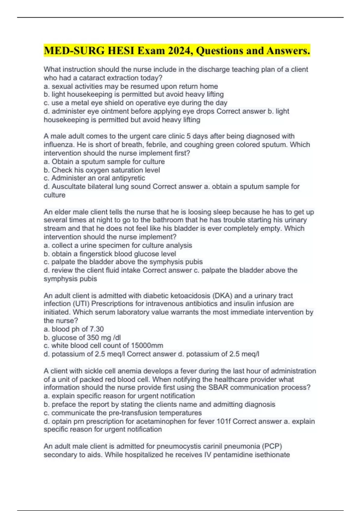 ATI EXIT MED SURG Review Questions and Answers ATI Med Surg Respiratory with Practice Questions and Validated Answers ATI RN Adult Medical Surgical COPD with Questions and Answers Med Surg ATI Capstone with Questions and Answers Med Surg Practice Questions and Accurate Answers Med-surg ANCC Certification Exam with Questions and Answers