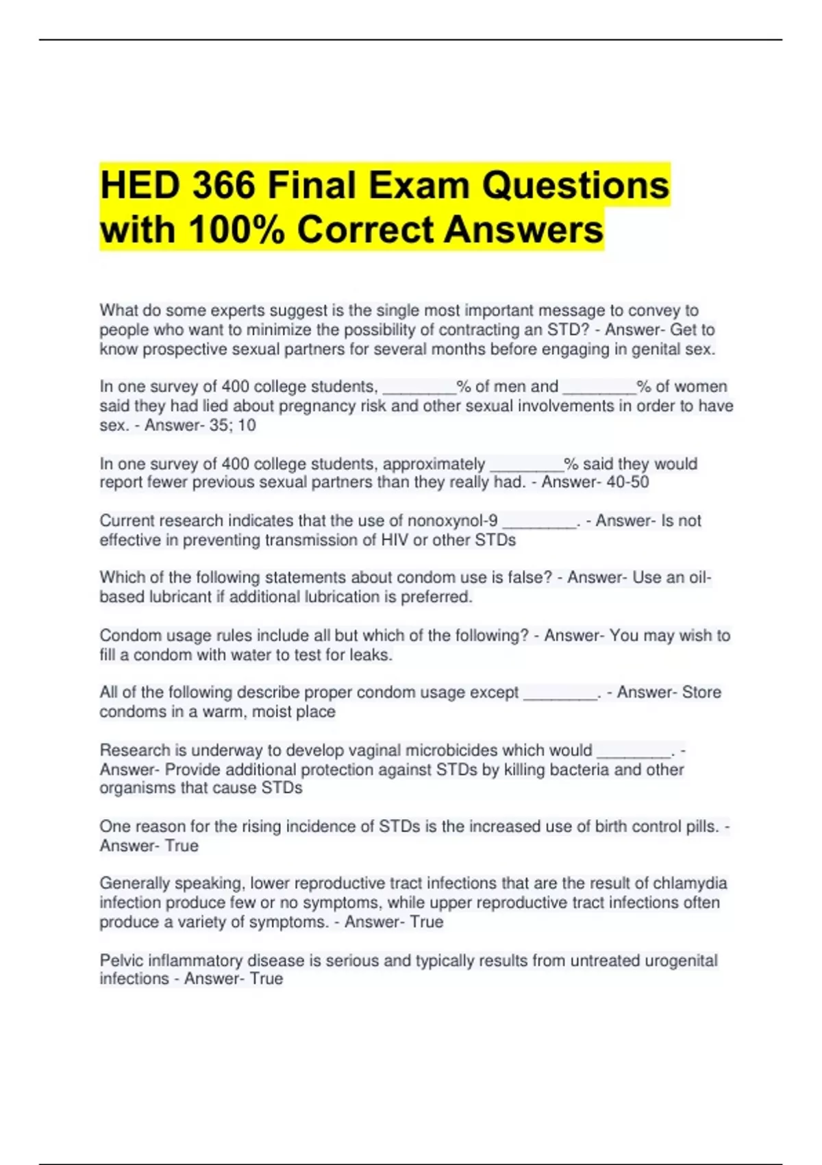 HED 366 Final Exam Questions with 100% Correct Answers 2 Exam (elaborations) HED 366 MIDTERM EXAM QUESTIONS AND CORRECT ANSWERS (GRADED A+) LATEST UPDATE 3 Exam (elaborations) HED 366 Lesson 7 Exam Questions and Answers All Correct 4 Exam (elaborations) HED 366 Lesson 9 Exam Questions with 100% Correct Answers 5 Exam (elaborations) HE