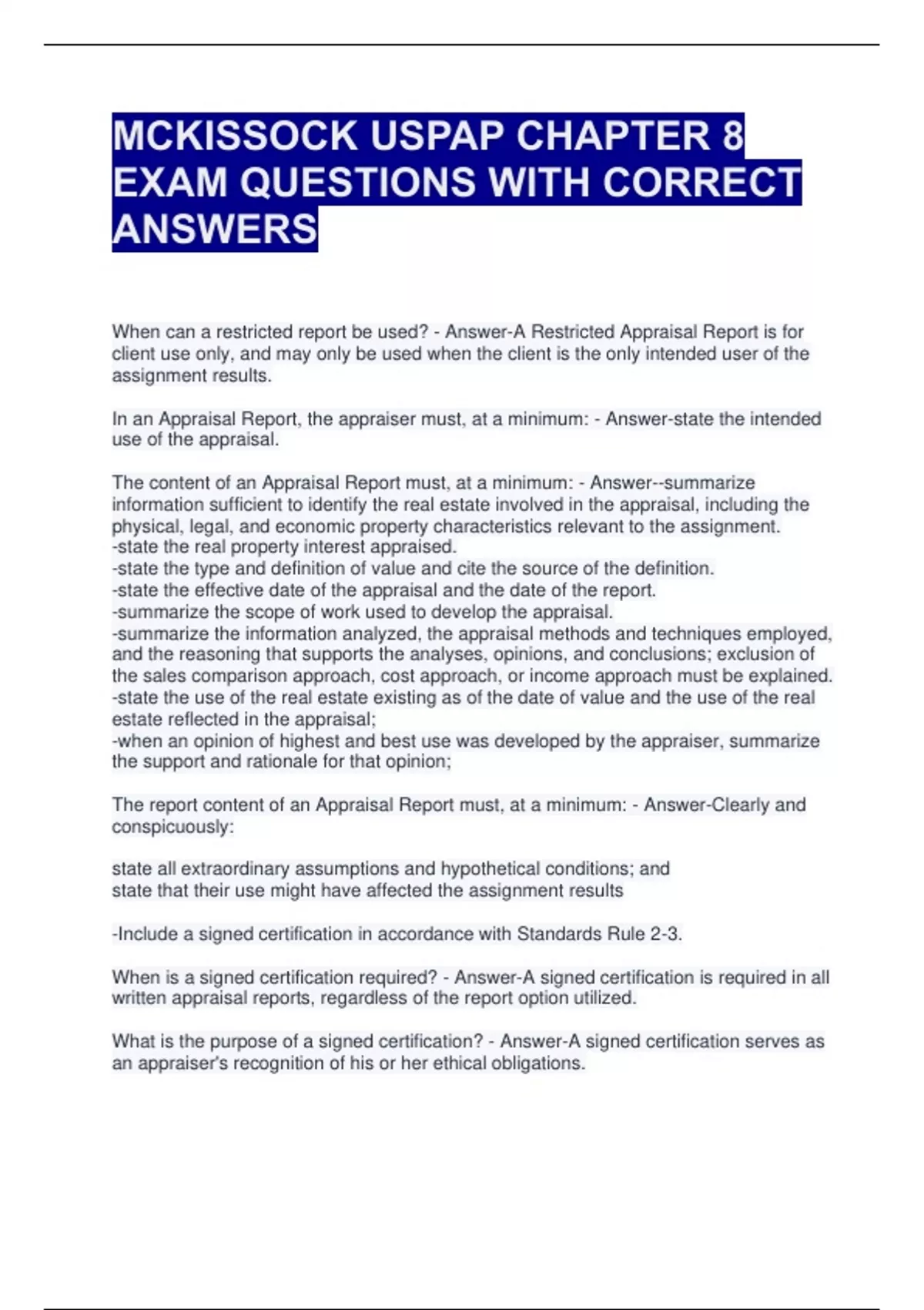 BASIC APPRAISAL PROCEDURES MCKISSOCK EXAM WITH COMPLETE QUESTIONS AND CORRECT ANSWERS 2 Exam (elaborations) MCKISSOCK COMBINED QUIZZES EXAM REPORTED QUESTIONS AND ANSWERS 3 Exam (elaborations) MCKISSOCK CHAPTER 10 40 HOUR TRAINING 2024 QUESTIONS AND ANSWERS 4 Exam (elaborations) MCKISSOCK CHAPTER 3 EXAM REPORTED QUESTIONS WITH CORRECT DETAILED A