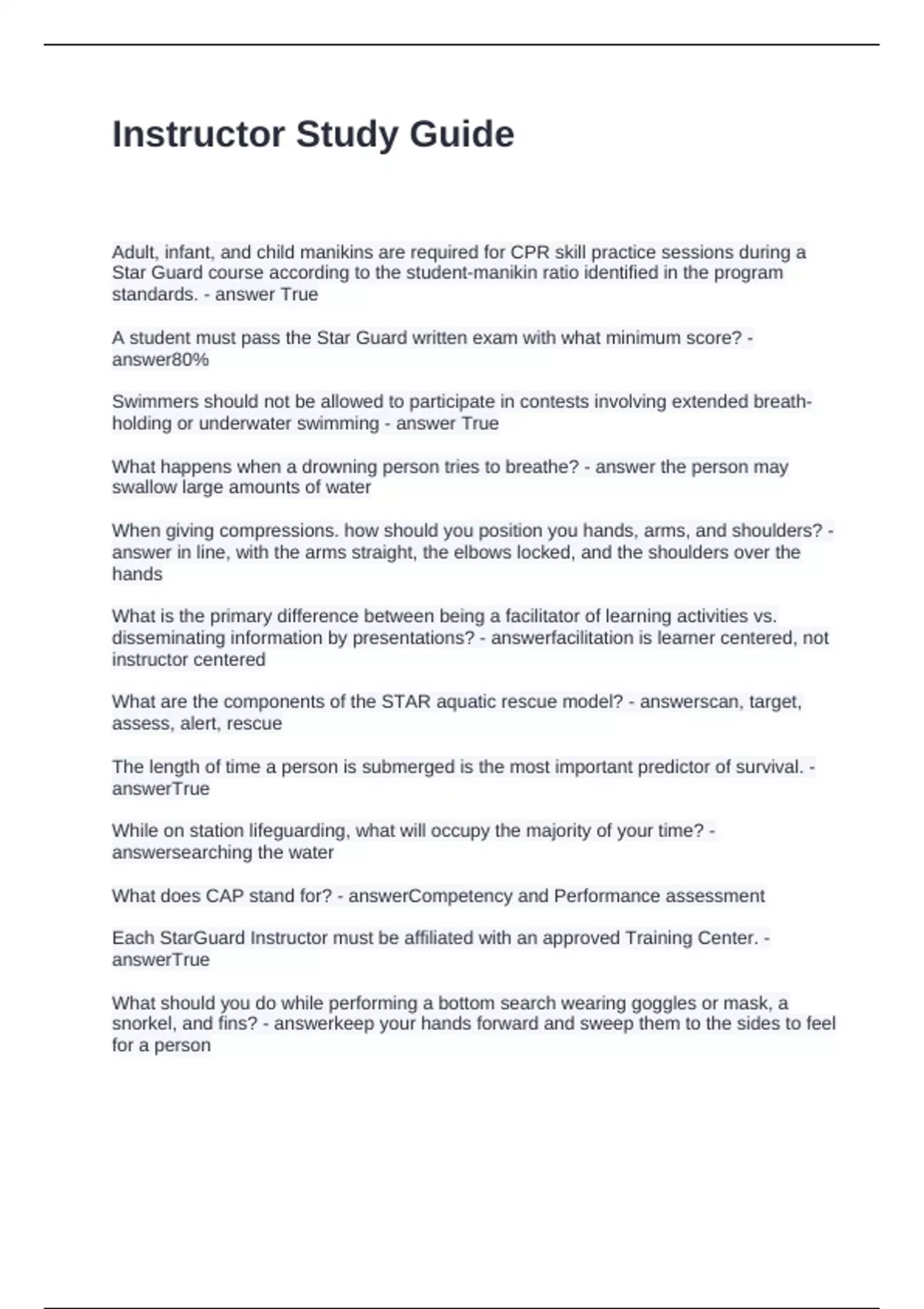 Exam (elaborations) Sun Splash Star guard Questions and Answers Exam (elaborations) STARGUARD QUESTIONS WITH ACCURATE ANSWERS Exam (elaborations) Star Guard Written Test for Lifeguard Certification Questions with Solutions 2024 Exam (elaborations) STARGUARD TEST QUESTIONS AND ANSWERS 100% CORRECT Exam (elaborations) Star guard exam Questio