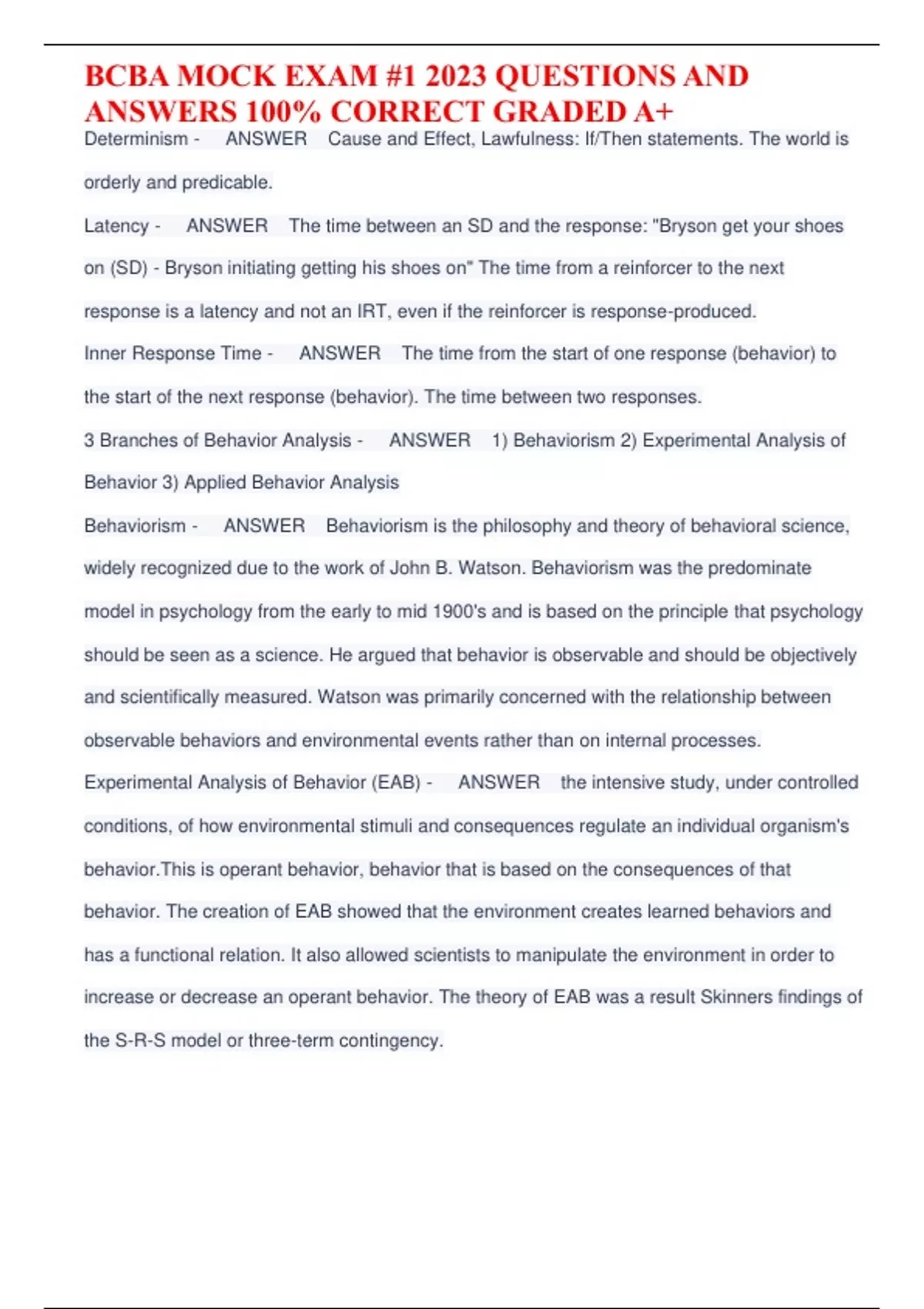 BCBA MOCK EXAM #1 2023 QUESTIONS AND ANSWERS 100% CORRECT GRADED A+ FIT BCBA MOCK EXAM LATEST UPDATE|| QUESTIONS WITH COMPLETE SOLUTIONS FIT BCBA MOCK EXAM LATEST UPDATE|| QUESTIONS WITH COMPLETE SOLUTIONS