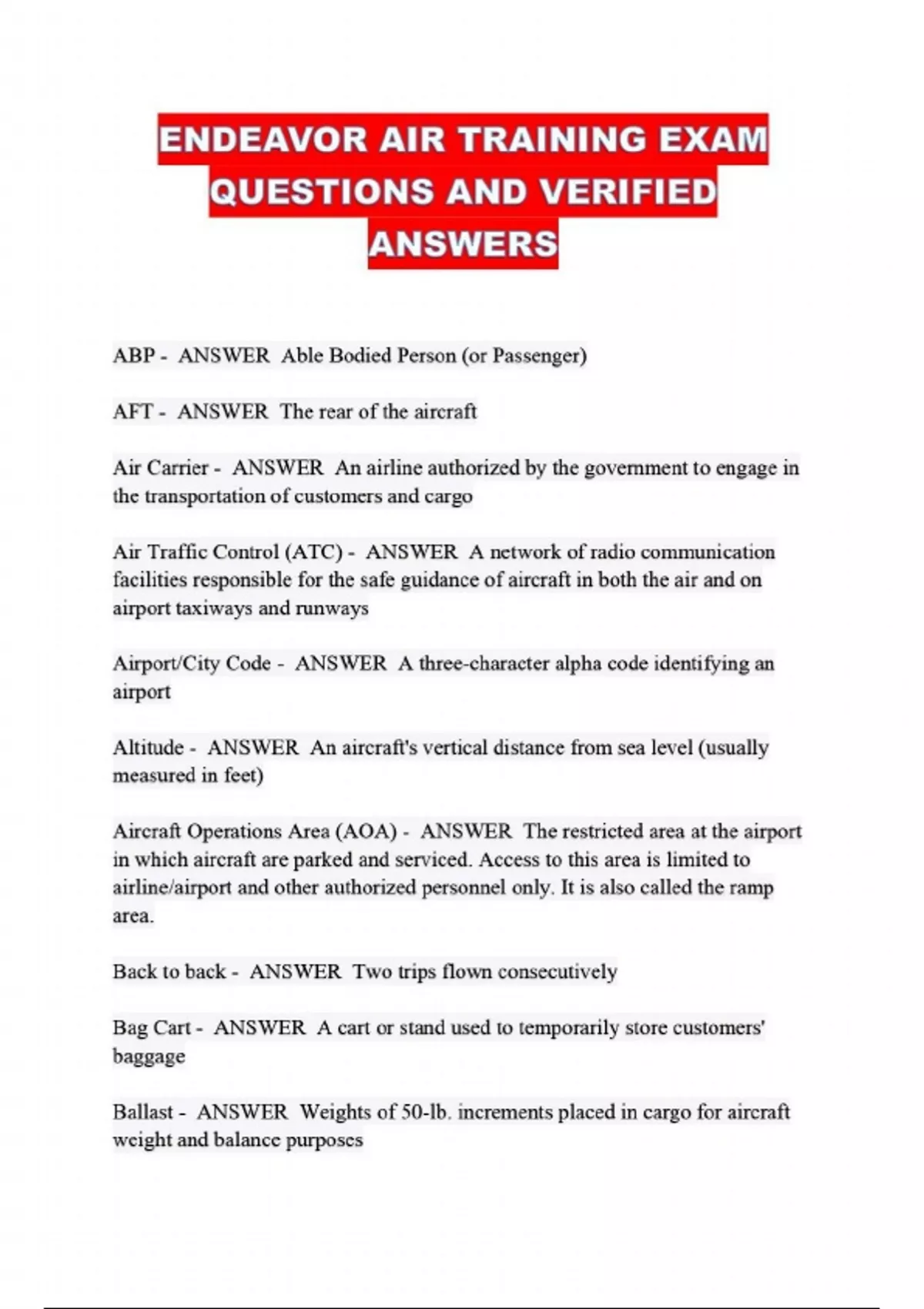 ENDEAVOR AIR TRAINING PACKAGED EXAMS!!!!