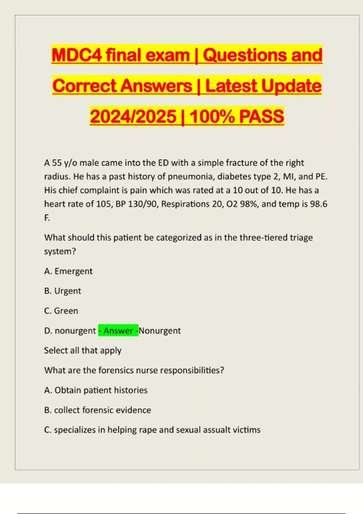 BUNDLE FOR MDC4 EXAMS:::: QUESTIONS AND CORRECT ANSWERS | LATEST UPDATE 2024/2025