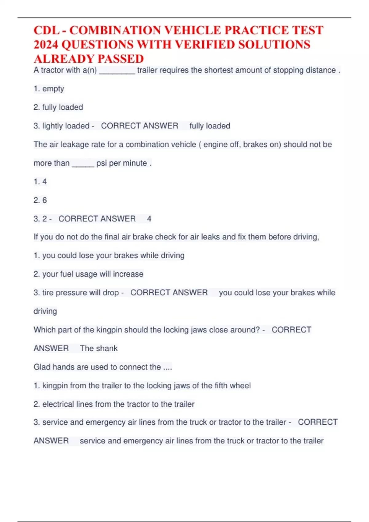 CDL COMBINATION VEHICLE EXAM CDL - COMBINATION VEHICLE PRACTICE TEST CDL COMBINATION EXAM LATEST UPDATE CDL COMBINATION VEHICLE PRACTICE TEST LATEST UPDATE NC CDL COMBINATION VEHICLES LATEST UPDATE