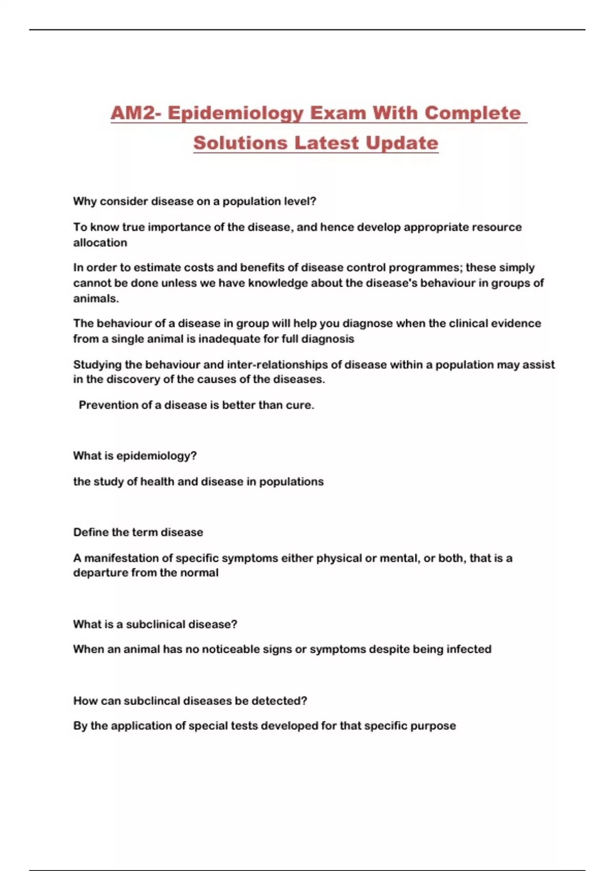 AM2- Epidemiology Exam Questions And Answers 100% Correct