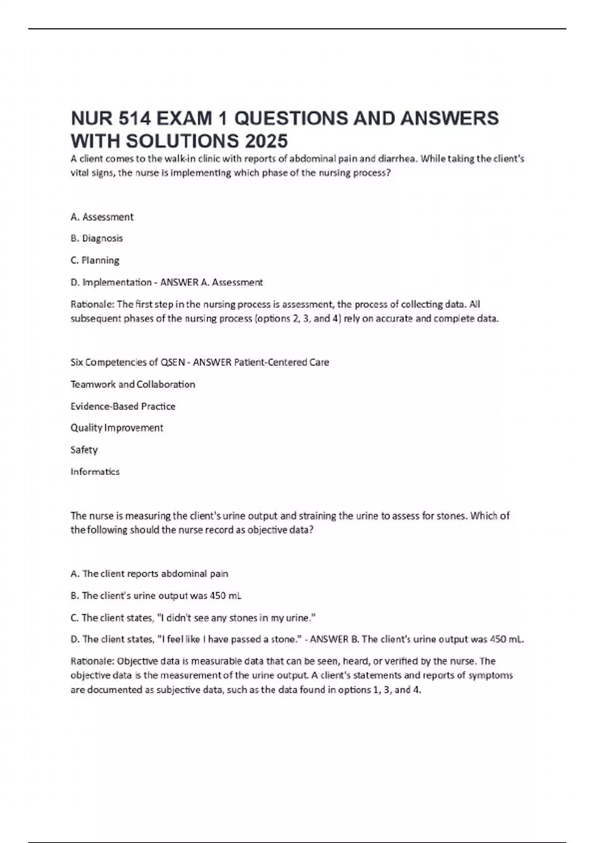 NUR 514 PACKAGE DEAL QUESTIONS AND ANSWERS WITH VERIFIED SOLUTIONS 2025