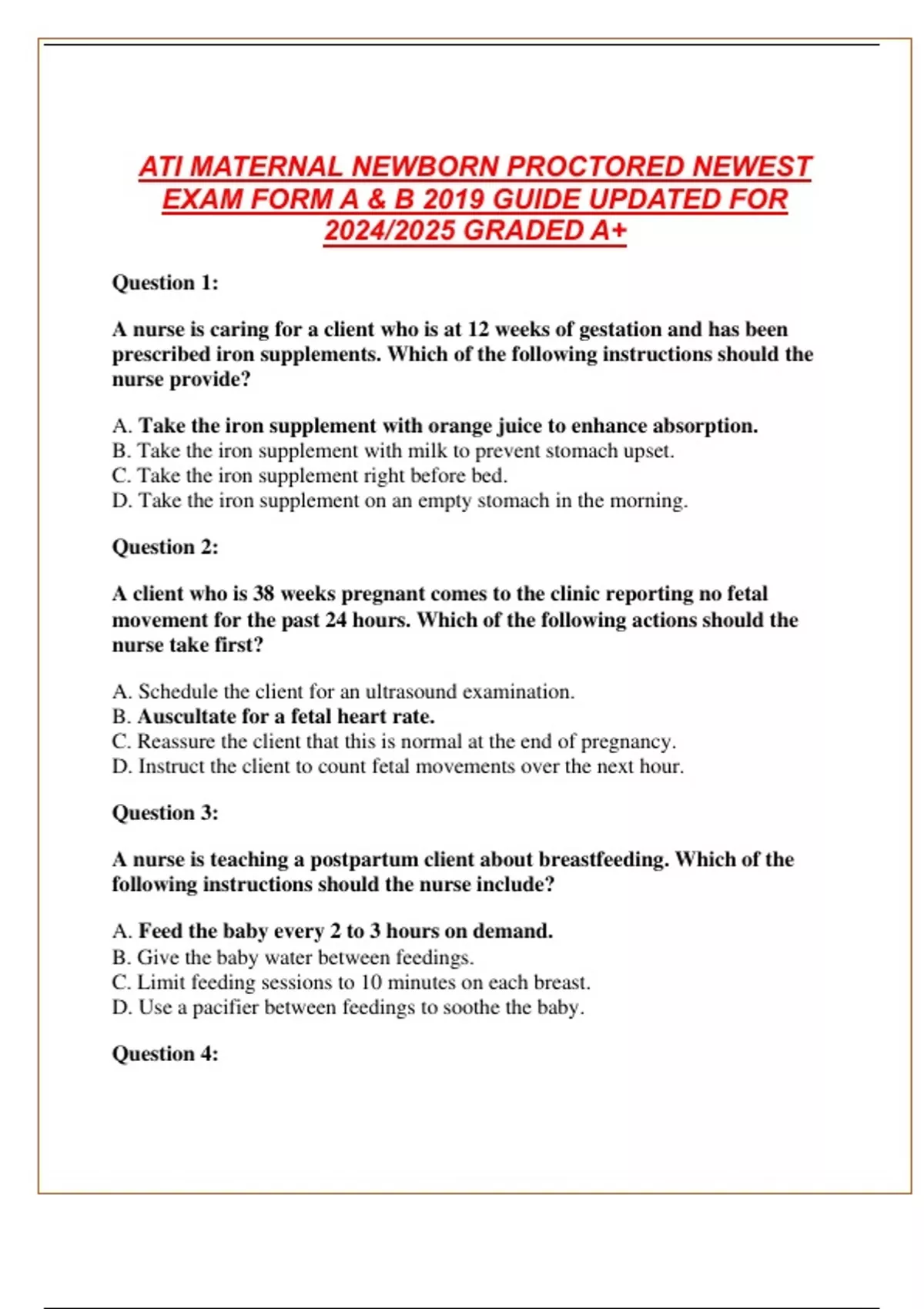PACKAGE DEAL FOR ATI MATERNAL NEWBORN PROCTORED NEWEST EXAM FORM A & B 2019 GUIDE UPDATED FOR 2024/2025 GRADED A+