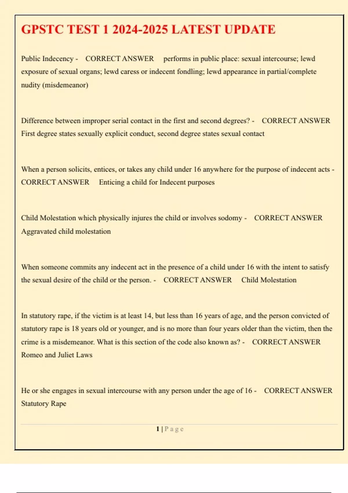 GPSTC TEST LATEST UPDATE GPSTC MIDTERM GPSTC EXAM 1- GA CRIMINAL LAW GPSTC EXAM 9 (INDEPENDENT STUDY) GPSTC INSTRUCTOR TRAINING GPSTC MIDTERM LATEST UPDATE