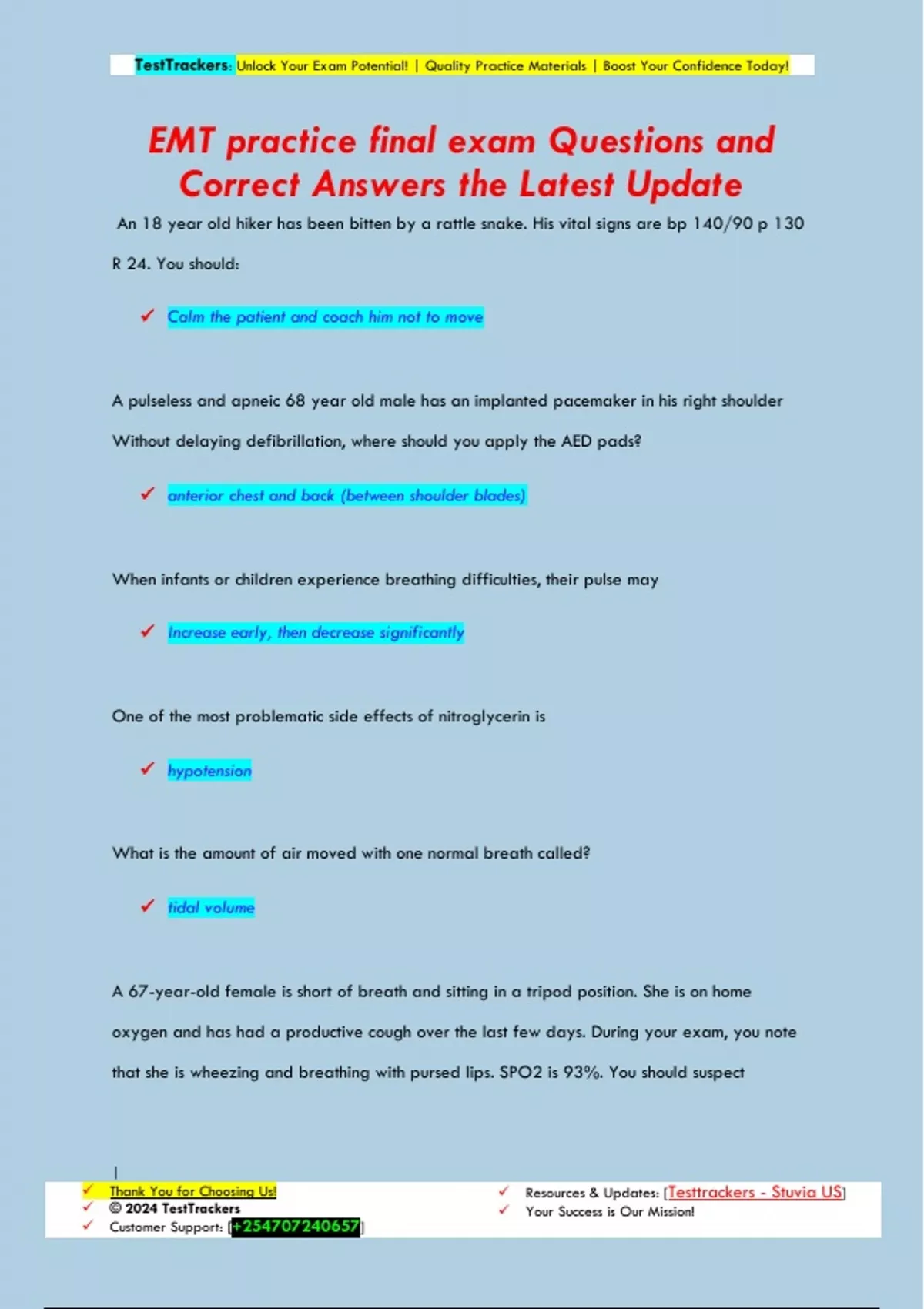 EMT final Questions and Correct Answers the Latest Update