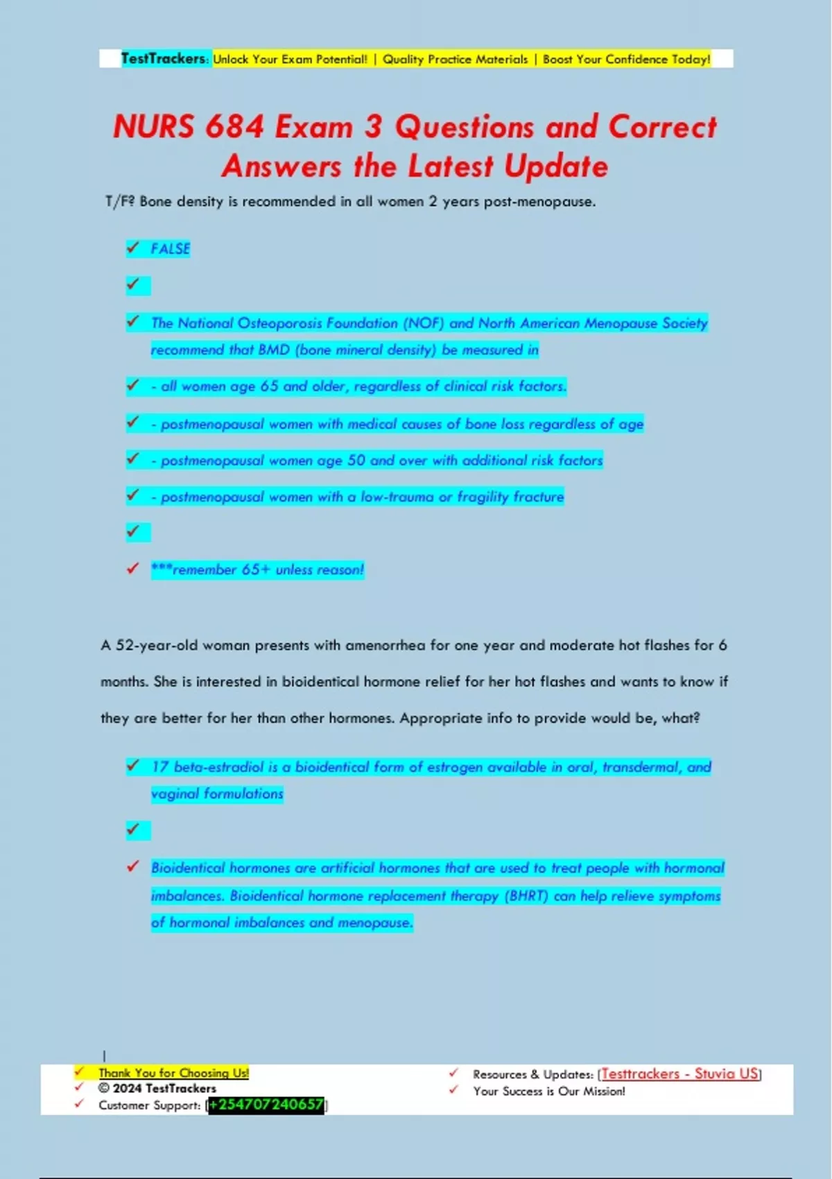 NUR 684 Women's Health final Questions and Correct Answers the Latest Update