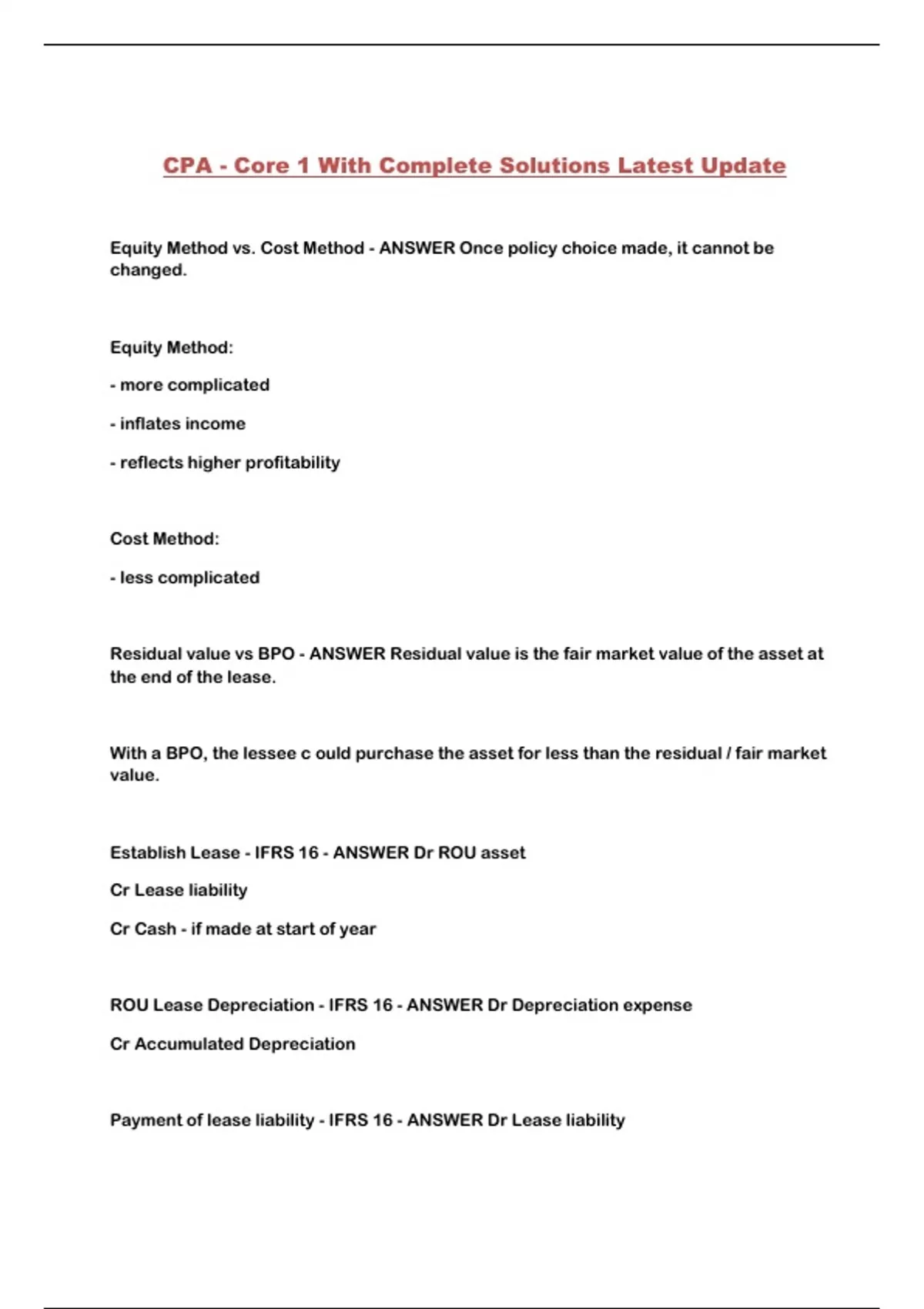 CPA CORE 1 EXAM MATERIALS WITH COMPLETE SOLUTIONS