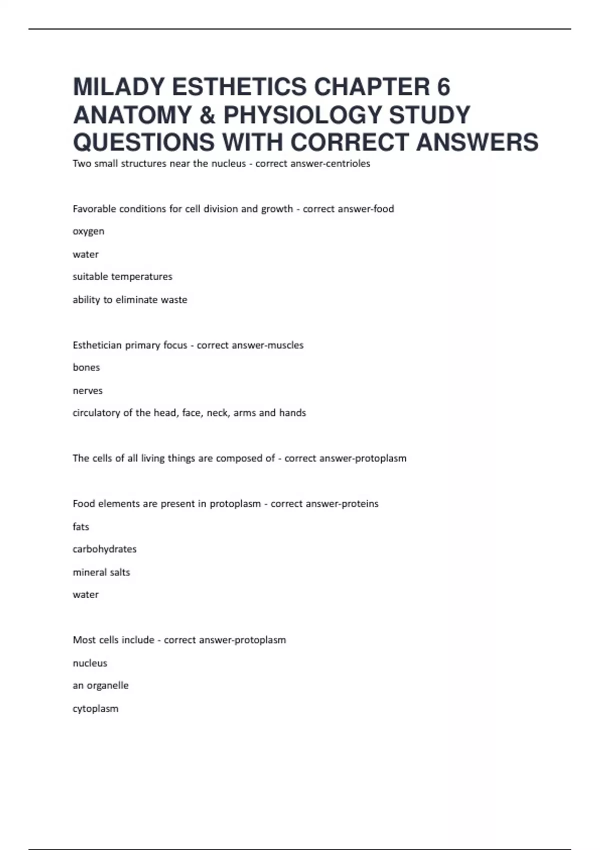 CHAPTER 2 MILADY ANATOMY AND PHYSIOLOGY QUESTIONS WITH CORRECT ANSWERS (LATEST UPDATE GRADED TO A+)