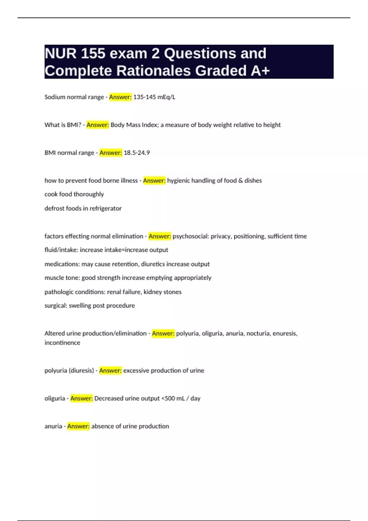 NUR 155 exam 2 Questions with Complete Rationales Graded A+