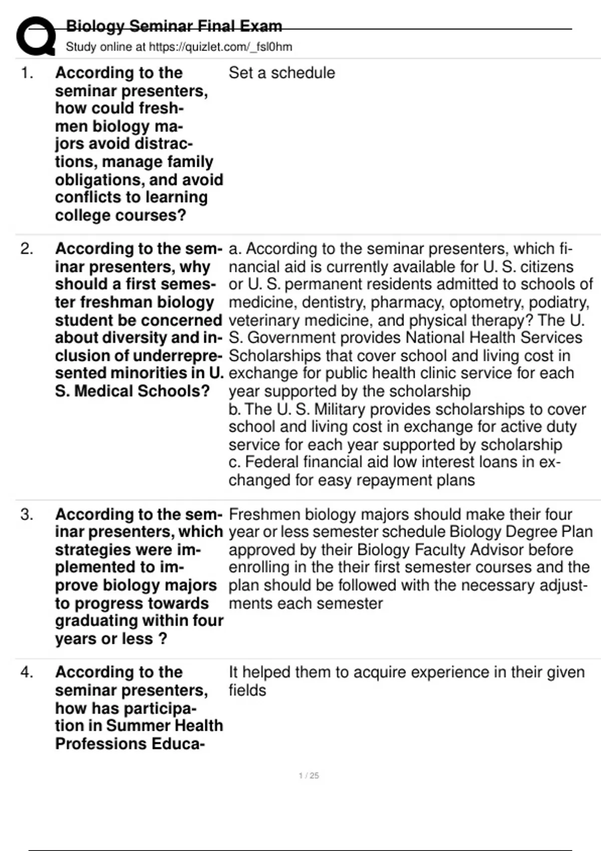 Biology Seminar Final Exam Exam Questions and Answers 100% Correct with complete solution