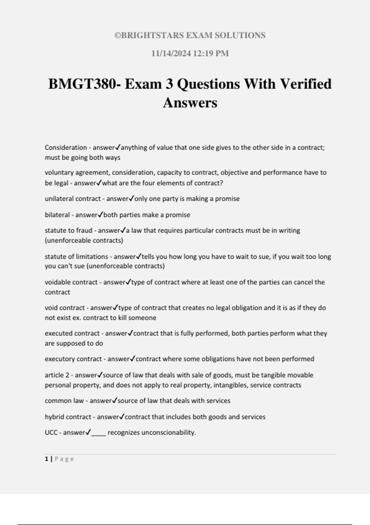 BMGT 380 - Business Law Midterm #1 Exam Questions With Verified Answers