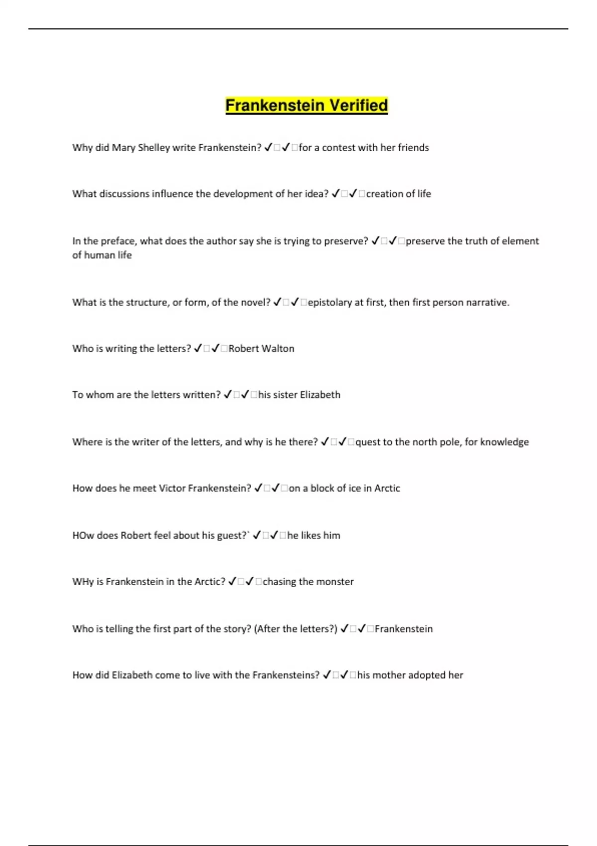 Frankenstein - All Chapters Package Solution