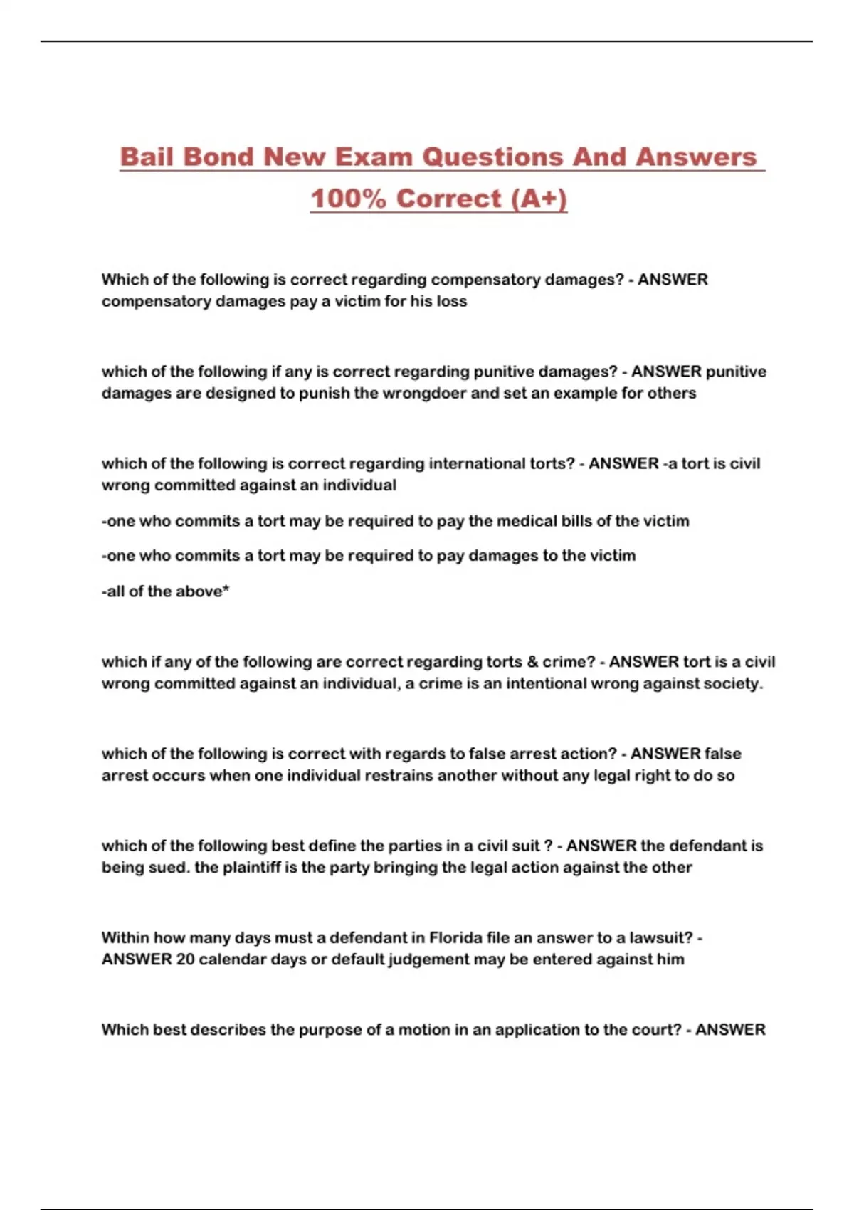 Bail Bond New Exam Questions And Answers 100% Correct (A+)