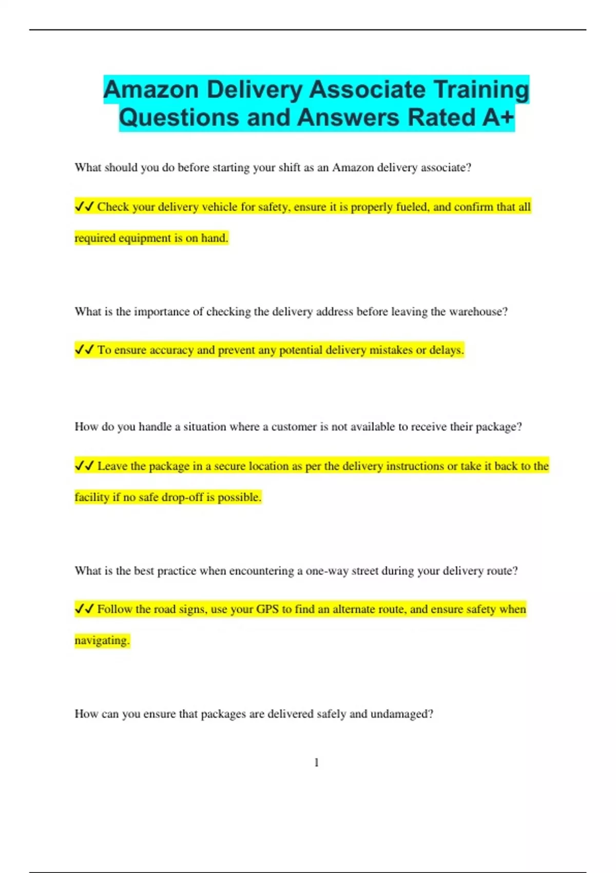 Amazon Driver Bundled Exams Questions and Answers Latest Versions (2024/2025) (Complete and Accurate)