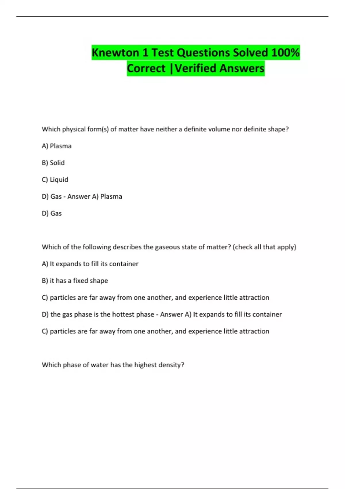 KNEWTON’S chemistry Test with Questions Solved 100% Correct |Verified Answers