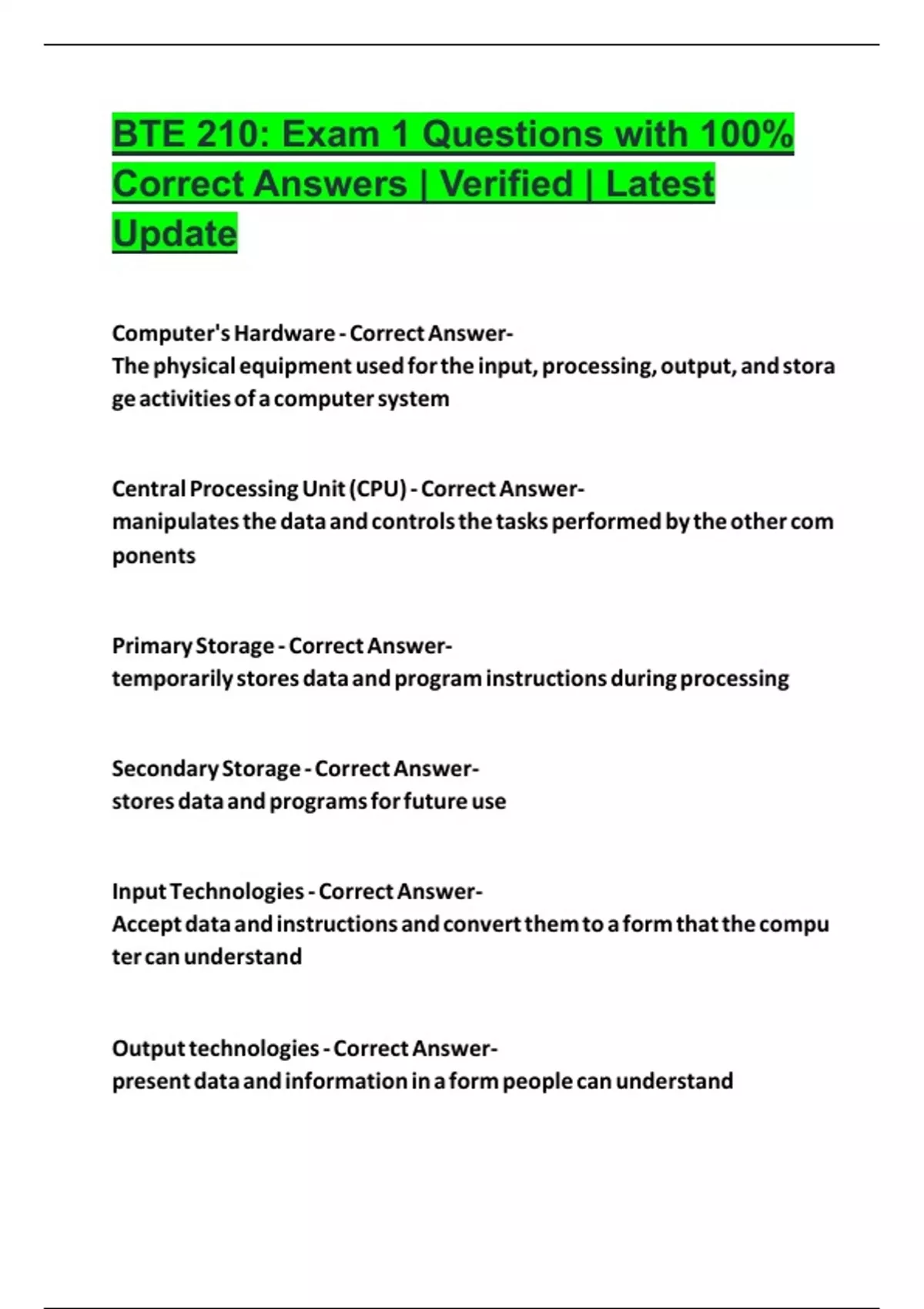 Package deal for BTE 210 Exam 1 Study Guide Questions with 100% Correct Answers | Verified | Latest Update