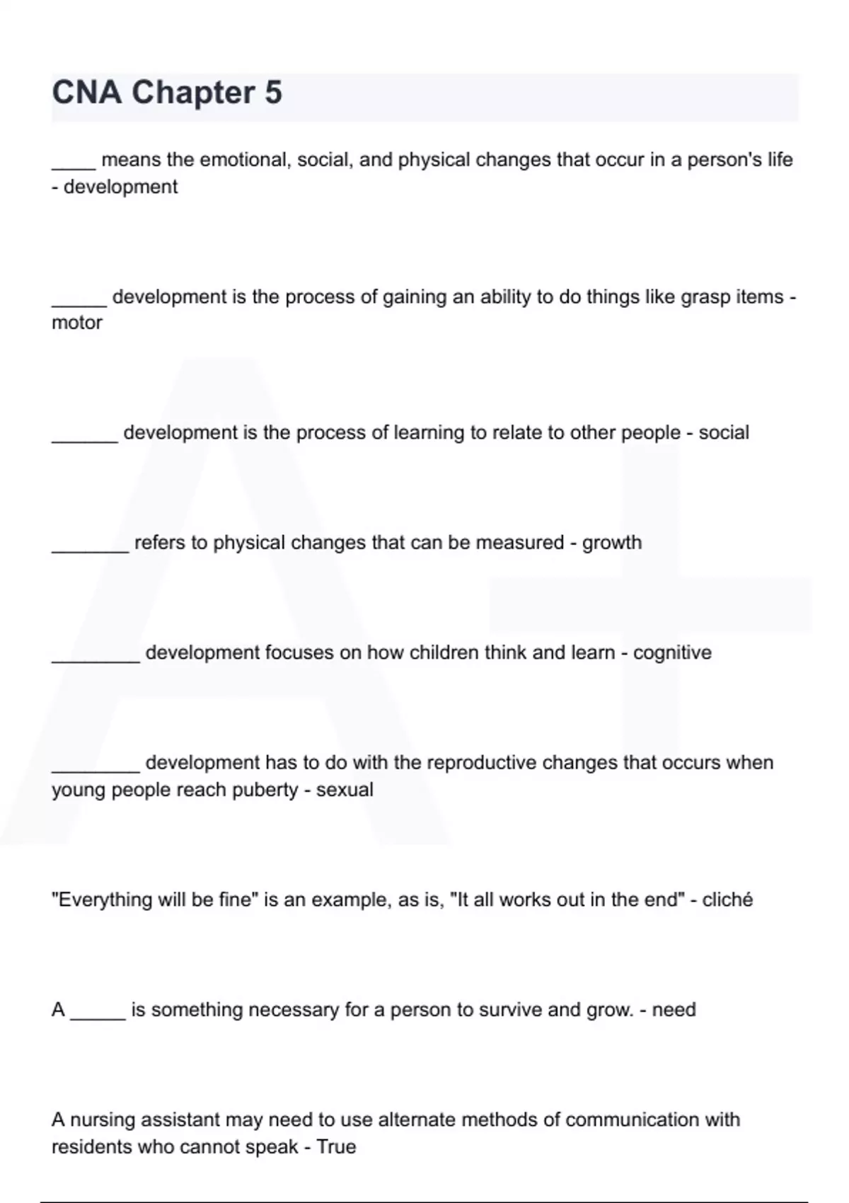 CNA Chapter 5 Questions and Revised Answers 2023/2024 Version.