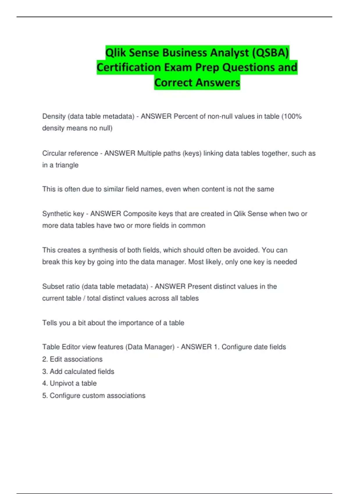 Qlik Sense Business Analyst (QSBA) Certification Exam Prep Questions and Correct Answers