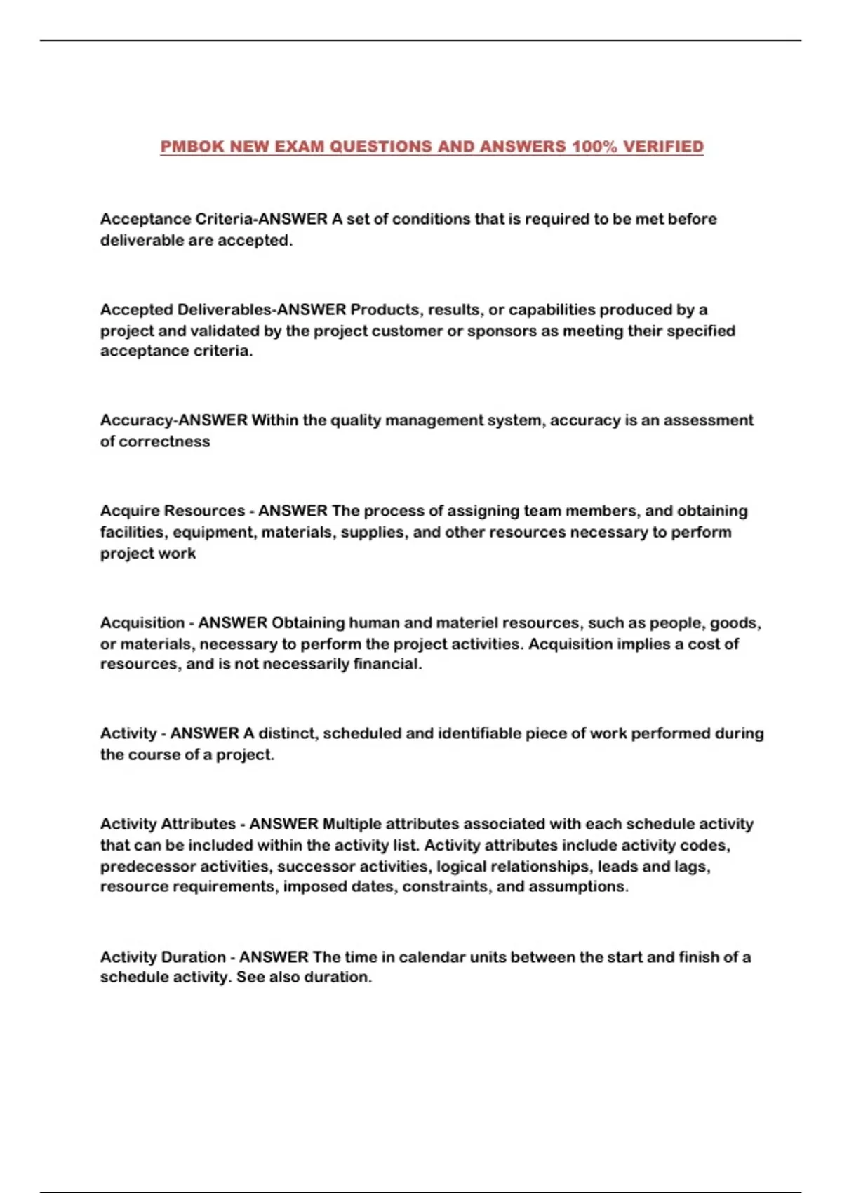 PMBOK NEW EXAM QUESTIONS AND ANSWERS 100% VERIFIED