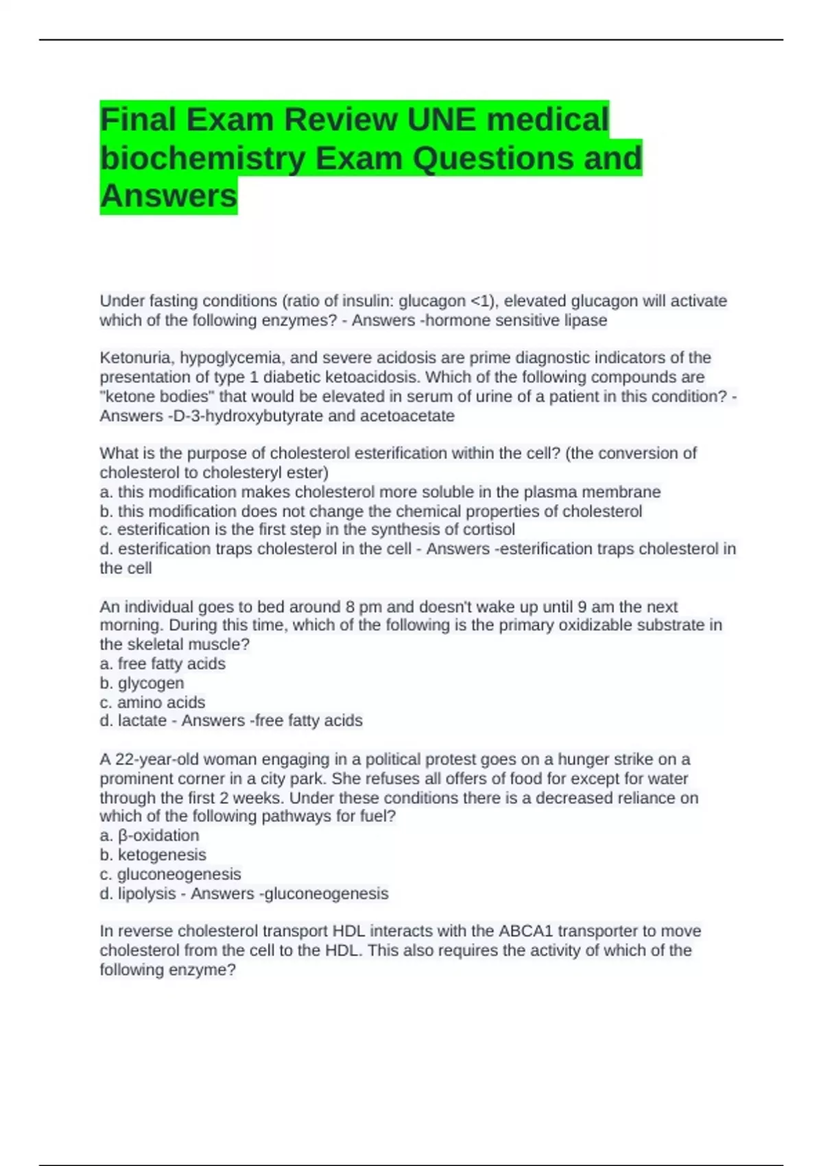 Unit 4 test UNE medical biochemistry Questions and Answers 2 Exam (elaborations) UNIT 1 - Quizzes and Exam, UNE medical biochemistry Unit 1 Test 3 Exam (elaborations) UNE Medical Biochemistry Midterm Review Questions and Answers 4 Exam (elaborations) UNE Medical Biochemistry Midterm Exam Questions and Answers 5 Exam (elaborations) UNE