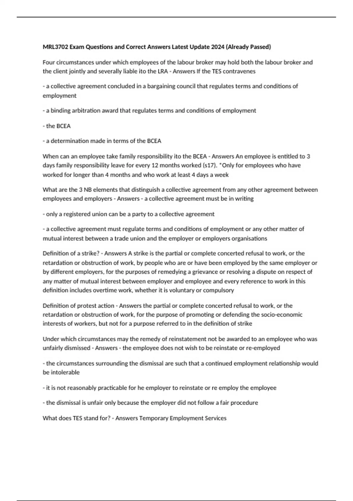 MRL Bundled Exam Questions and Correct Answers Latest Update 2024