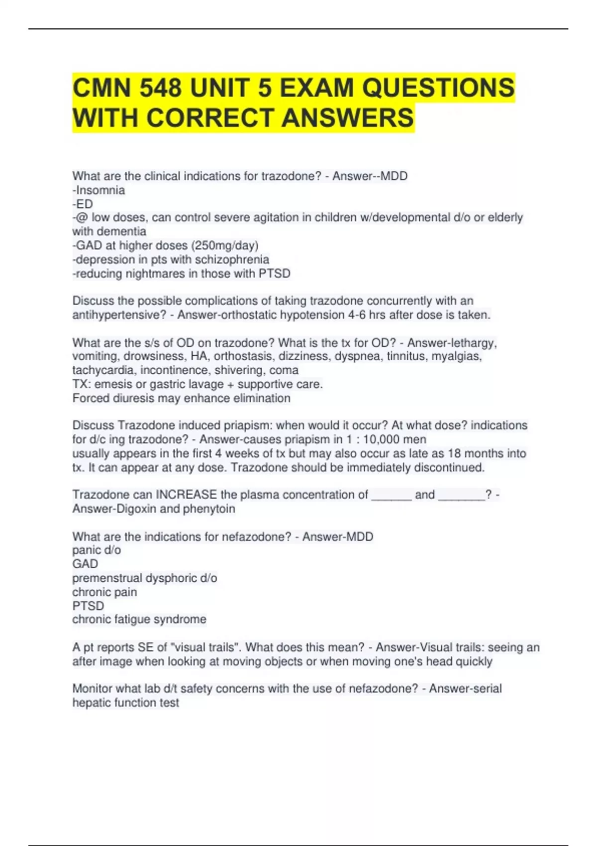 CMN 548 UNIT 5 EXAM QUESTIONS WITH CORRECT ANSWERS 2 Exam (elaborations) CMN 548 UNIT 5 EXAMINATION QUESTIONS WITH CORRECT DETAILED ANSWERS 3 Exam (elaborations) CMN 548 MODULE 3 EXAM REPORTED QUESTIONS AND ANSWERS 4 Exam (elaborations) CMN 548 MODULE 1 STUDY QUESTIONS LATEST UPDATES