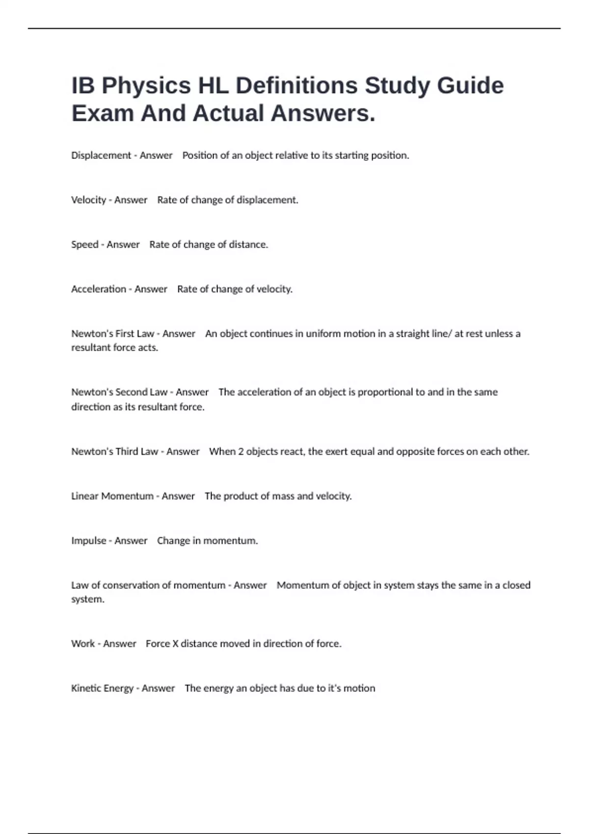 1 Exam (elaborations) IB Physics Topic 7 Prep Exam Questions And All Correct Answers. 2 Exam (elaborations) IB Physics Topic 1 - Measurements and Uncertainties Prep Exam And Correct Answers. 3 Exam (elaborations) IB Physics Semester 1 Final Exam Questions Well Answered. 4 Exam (elaborations) IB Physics HL Topic 7 & 12 Study Guide Exam Questions