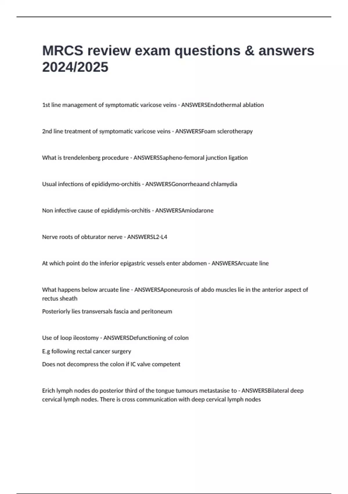 MRCS REVIEW TEST QUESTIONS & ANSWERS 2024/2025