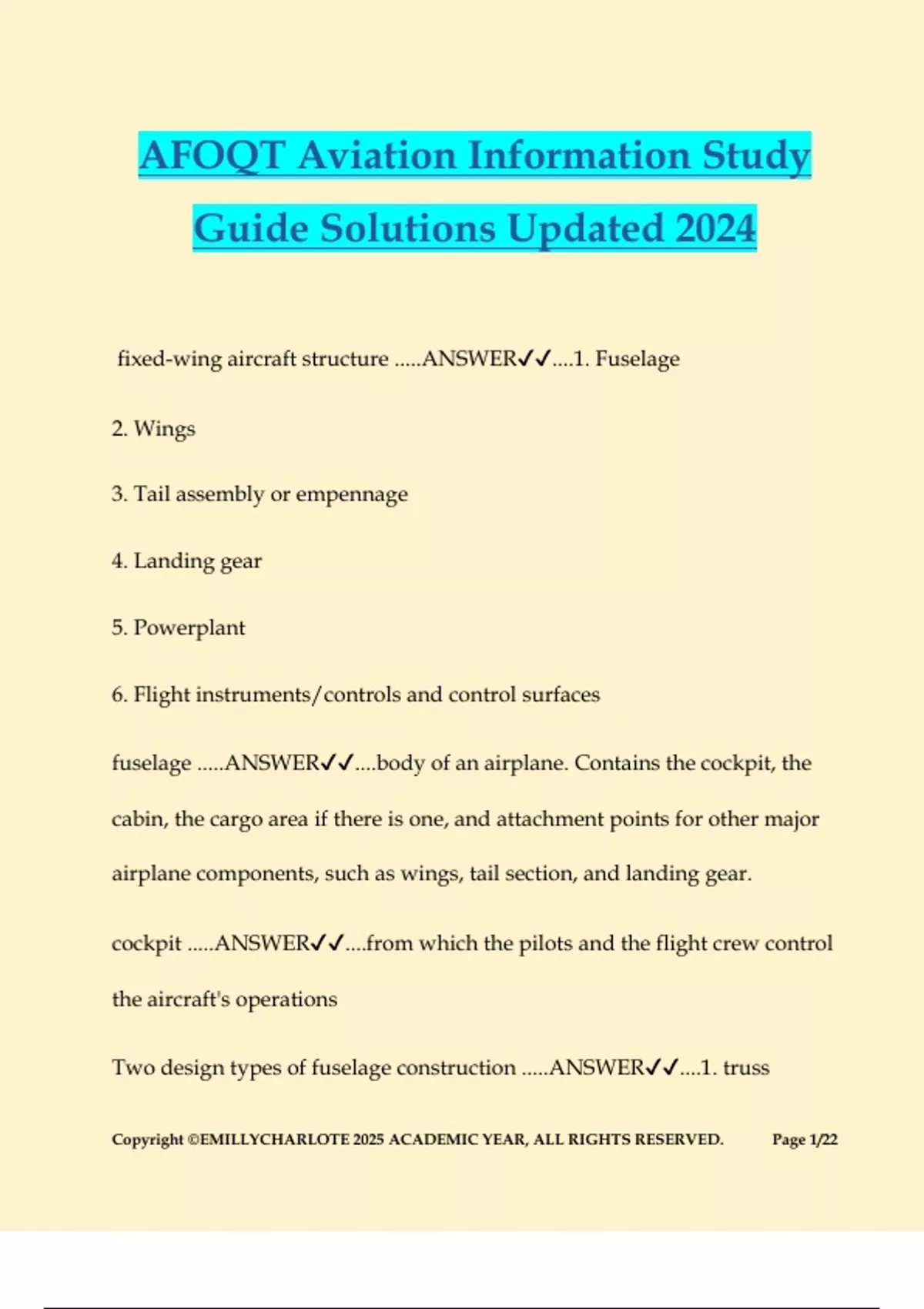 AFOQT Aviation Information Study Guide Solutions Updated 2024