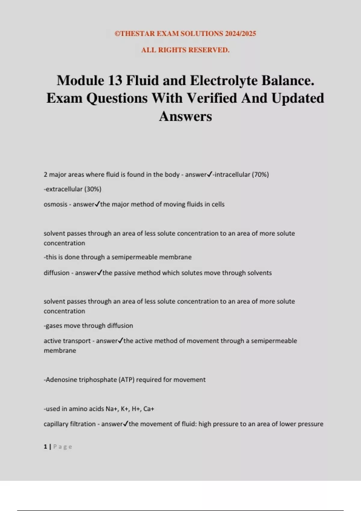 Fluid & Electrolyte Exam Package Deal Questions With Verified Solutions.