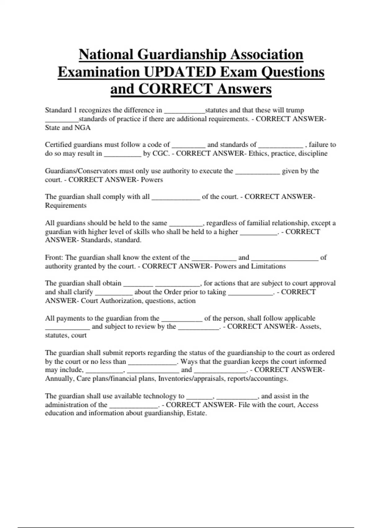 Guardianship Bundled Exam Questions and CORRECT Answers