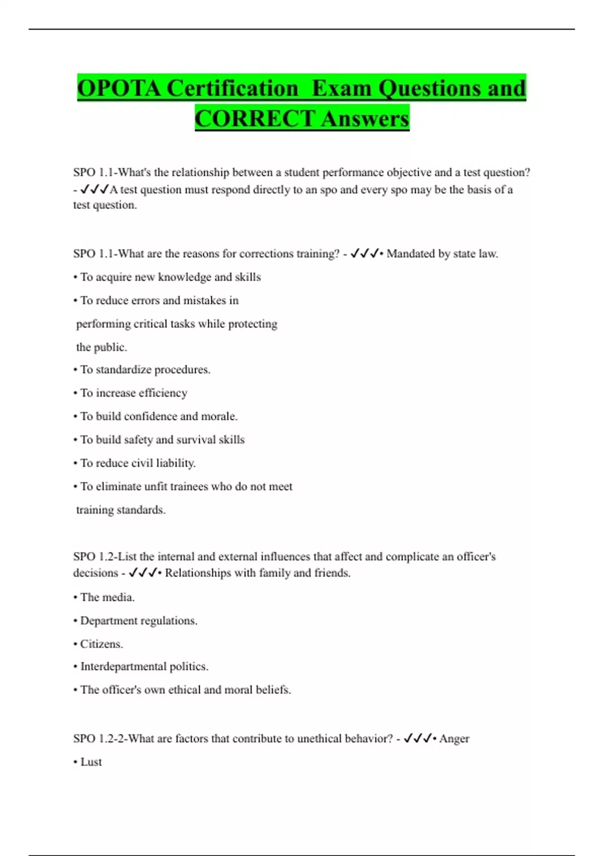 OPOTA Bundled Exam Questions and CORRECT Answers