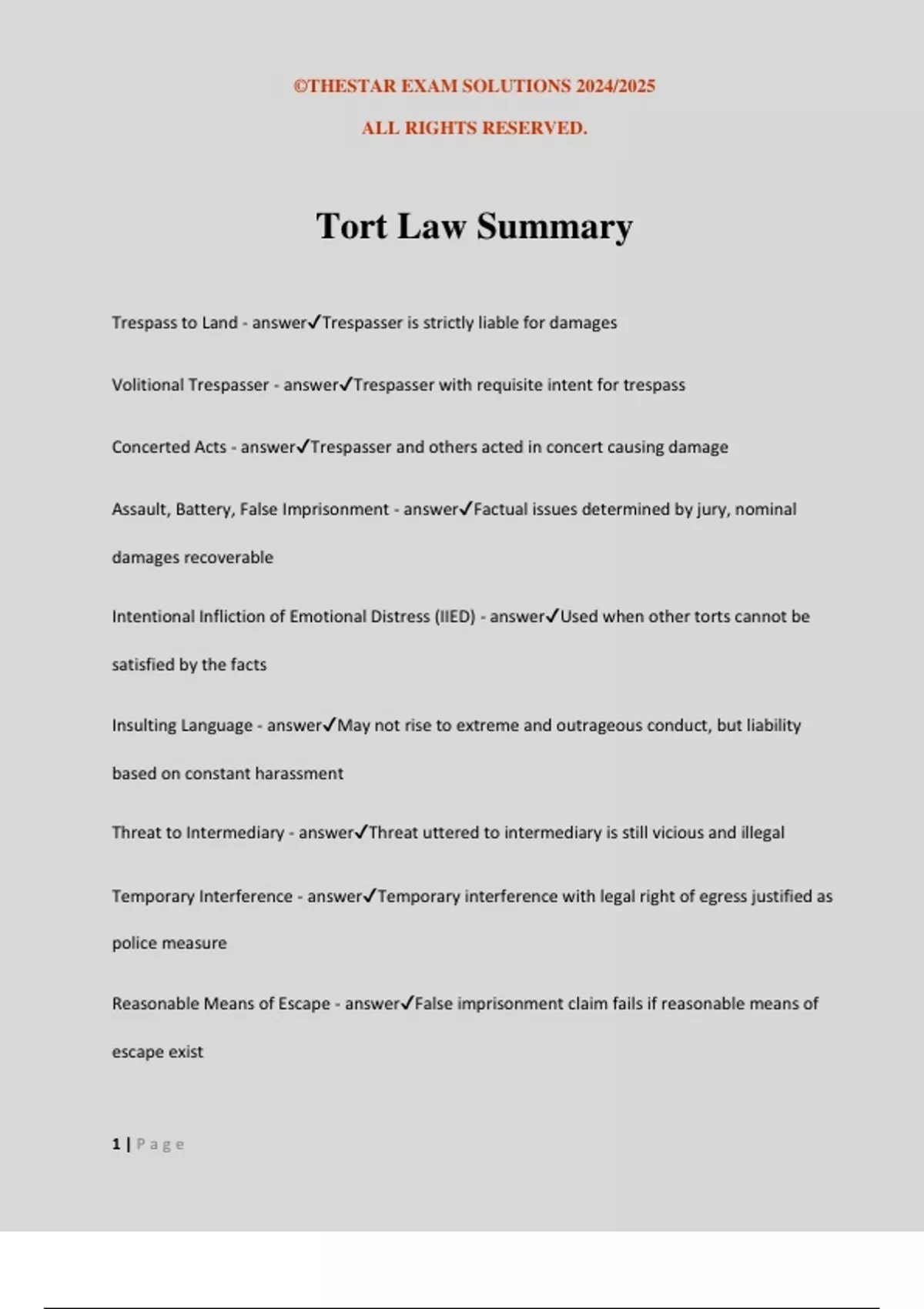 Tort Law Exam Questions With Correct Answers.