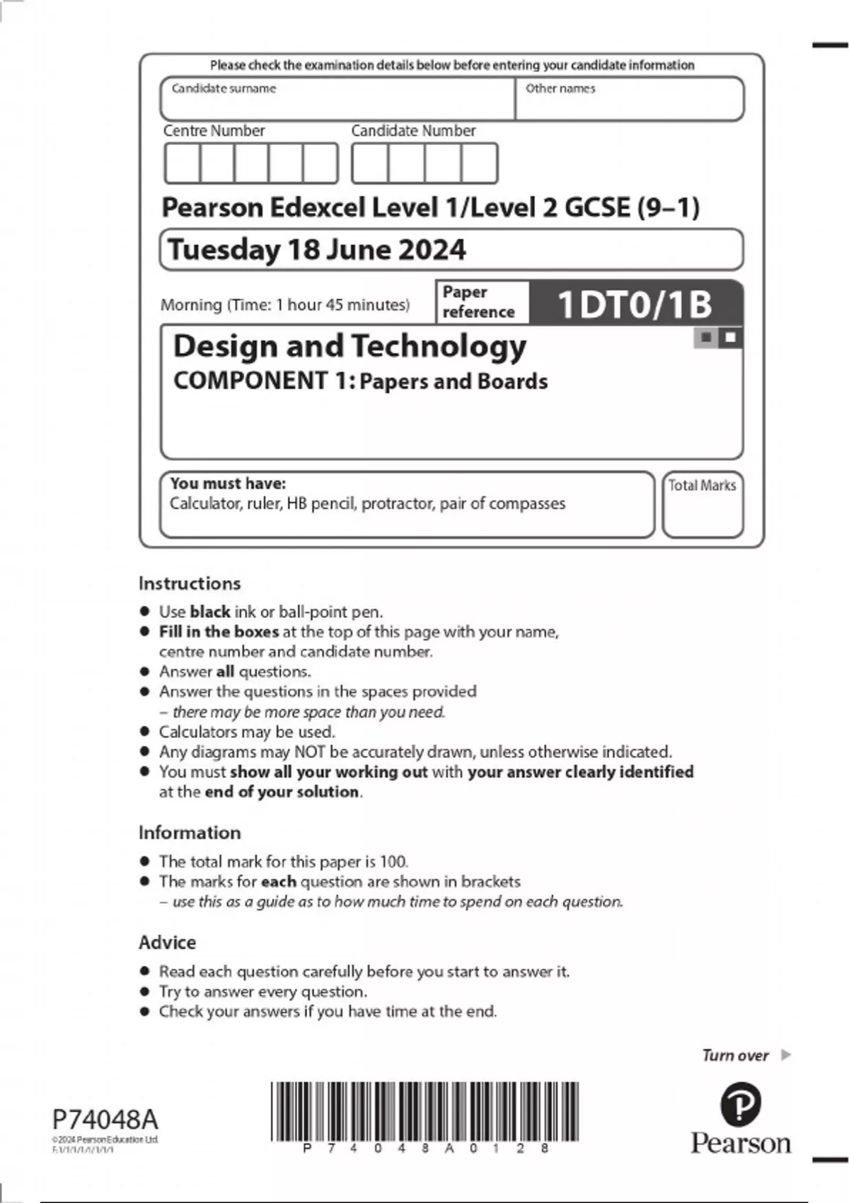 2024 EDEXCEL GCSE DESIGN AND TECHNOLOGY COMPONENT 1: PAPERS AND BOARDS