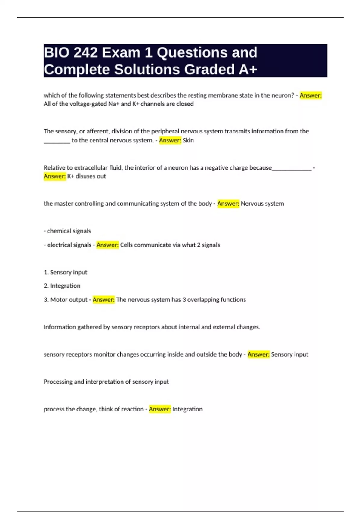 BIO 242 chapter 22- Respiratory System Questions and Complete Solutions Graded A Bundle Compilation