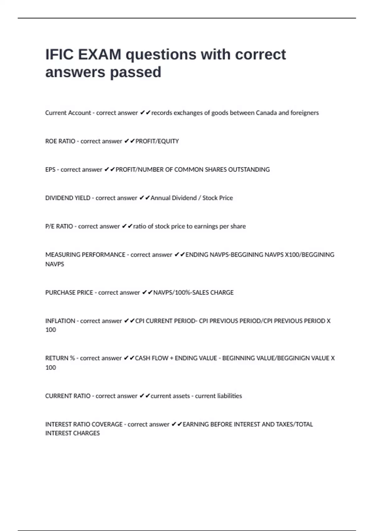 1 Exam (elaborations) IFIC Chapter 16 questions with correct answers 2 Exam (elaborations) IFIC Ch 11 questions well answered to pass 3 Exam (elaborations) IFIC Chapter 7 questions n answers rated A+ 4 Exam (elaborations) IFIC Chapter 8 Key Terms questions with complete solutions 5 Exam (elaborations) IFIC Chapter 14 questions with verified sol