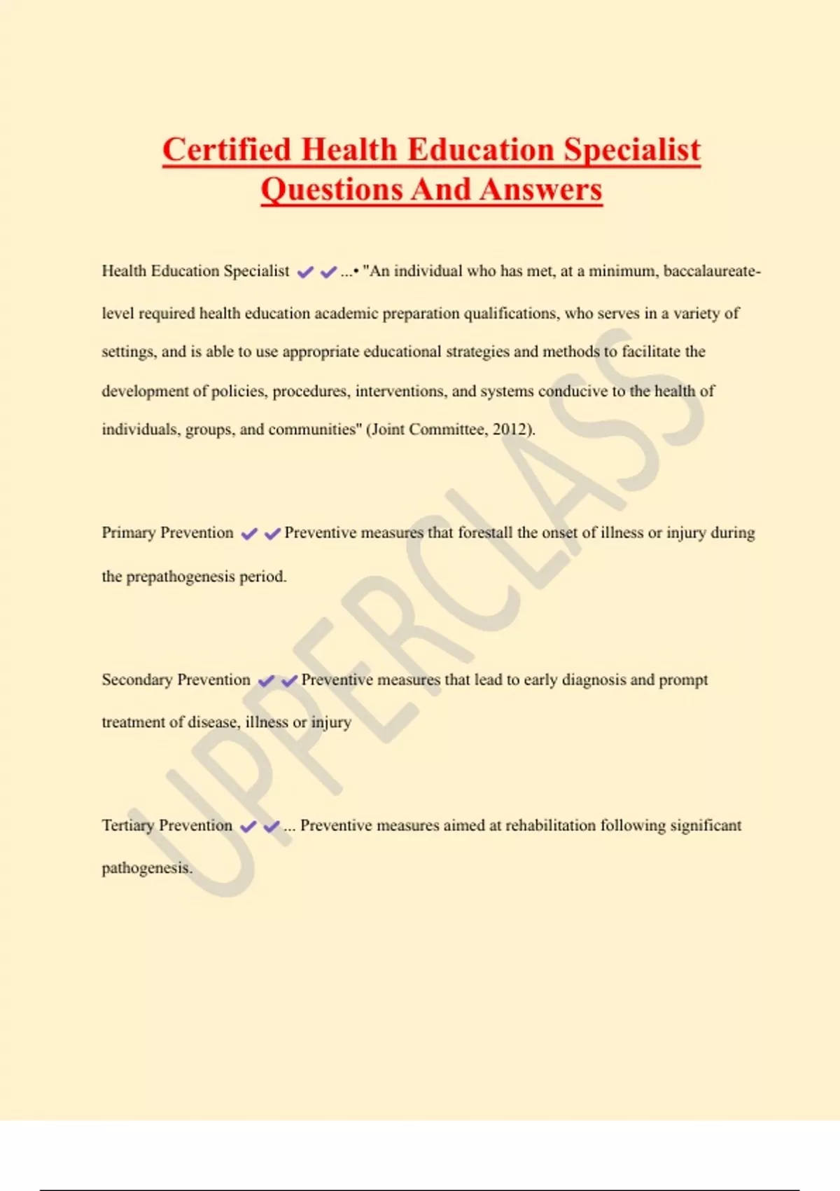 Certified Health Education Specialist Questions And Answers 2 Exam (elaborations) NCHEC-Health Education.8th Ed. Questions And Answers