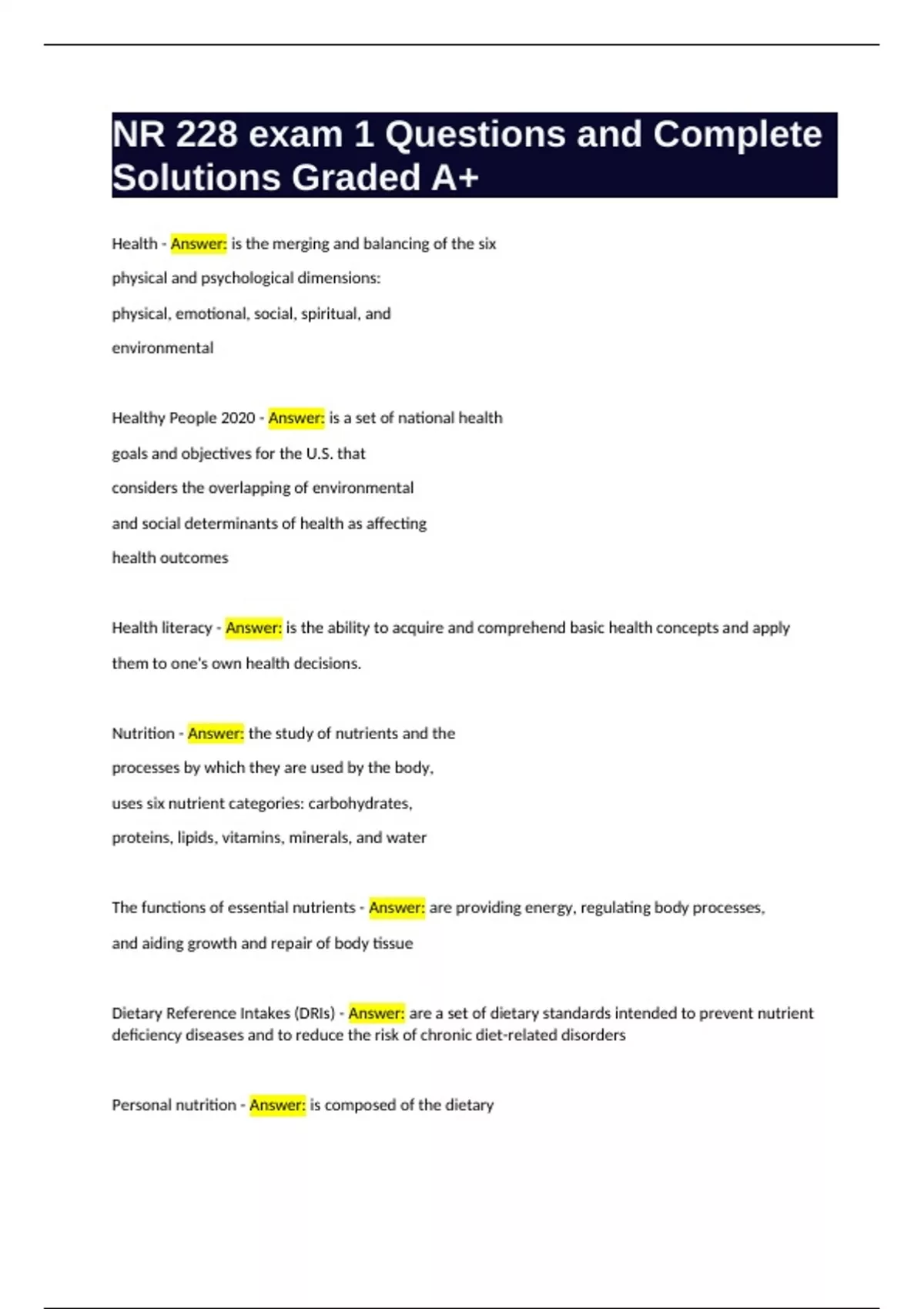 NR 228 Final Exam Questions and Complete Solutions Graded A Bundle Compilation