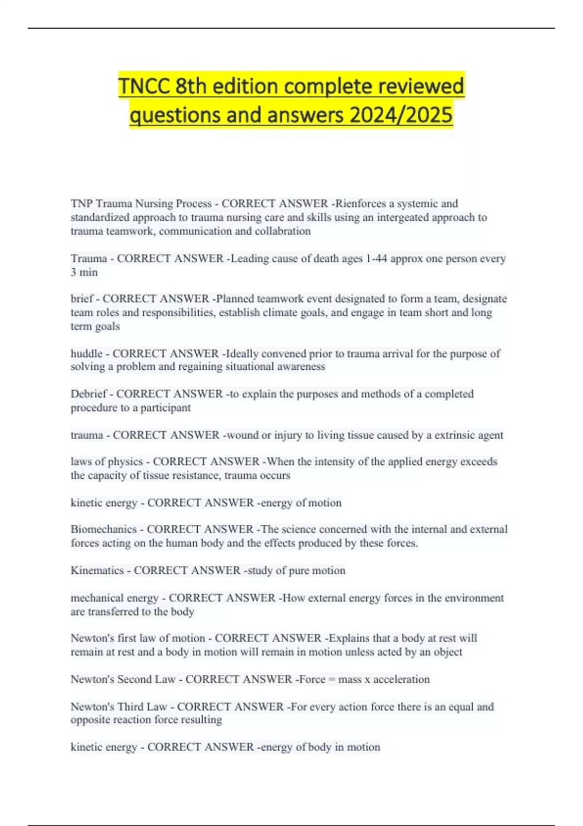 TNCC 8th Edition Provider Exam reviewed questions and answers 2024/2025 TNCC 8th Edition Provider Exam reviewed questions and answers 2024/2025 TNCC 8th Edition Provider Exam reviewed questions and answers 2024/2025