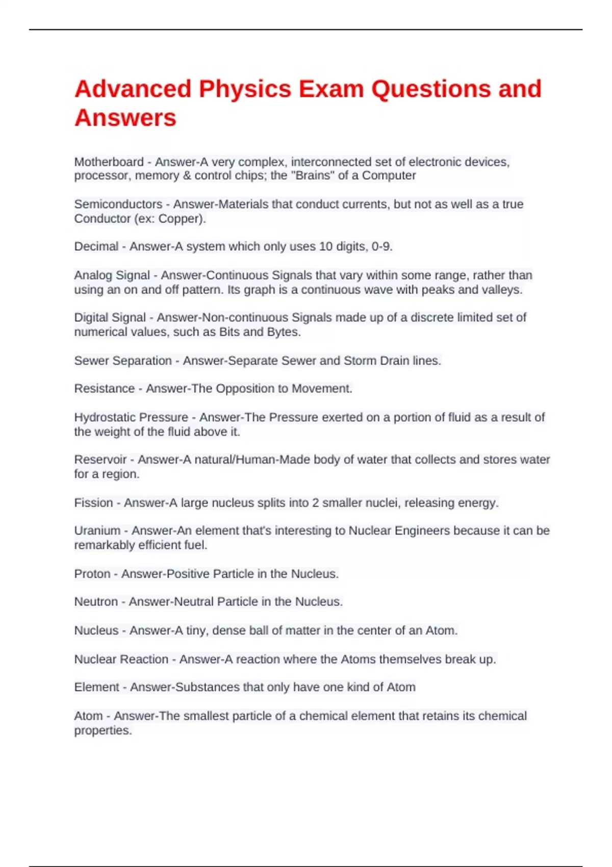 Exam (elaborations) PHYSICS EXAM QUESTIONS AND ANSWERS Exam (elaborations) physics exam questions with correct answers Exam (elaborations) Physics Exam Review Questions and Answers Exam (elaborations) Physics Exam Review Questions and Answers Exam (elaborations) Physics Final Exam Review Questions and Answers Exam (elaborations) Physics