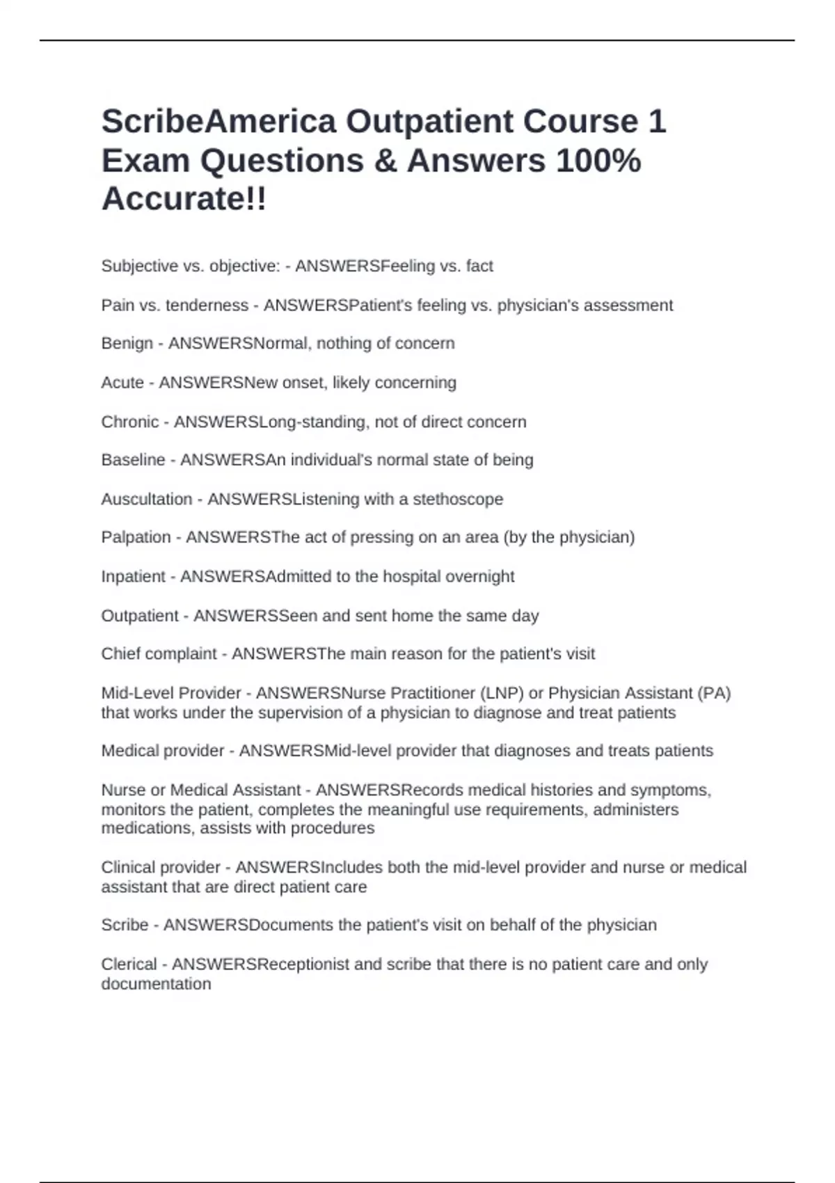 Scribe America Final Outpatient Exam BUNDLE 100% Accurate!!