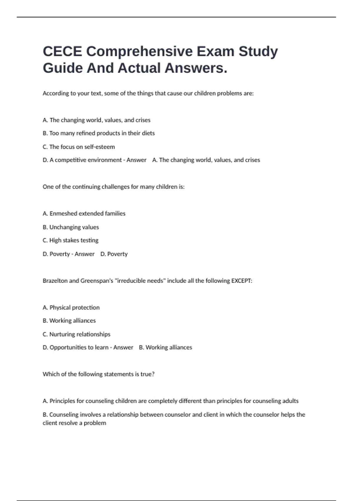 1 Exam (elaborations) CECE OVERVIEW EXAM QUESTIONS AND ALREADY PASSED ANSWERS. 2 Exam (elaborations) CECE EXAM QUESTIONS AND ANSWERS (REVISED &VERIFIED). 3 Exam (elaborations) CO 543 CECE STUDY MATERIAL EXAM QUESTIONS AND 100% CORRECT ANSWERS. 4 Exam (elaborations) CECE: Professional Orientation and Ethical Practice Exam And Answers. 5 Exam (el