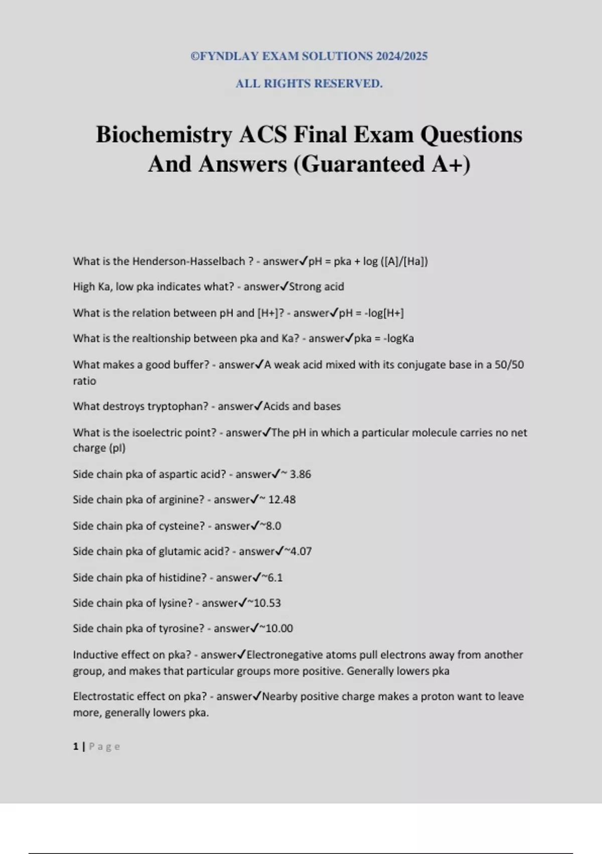 Biochemistry ACS Final Exam Questions And Answers (Guaranteed A+)