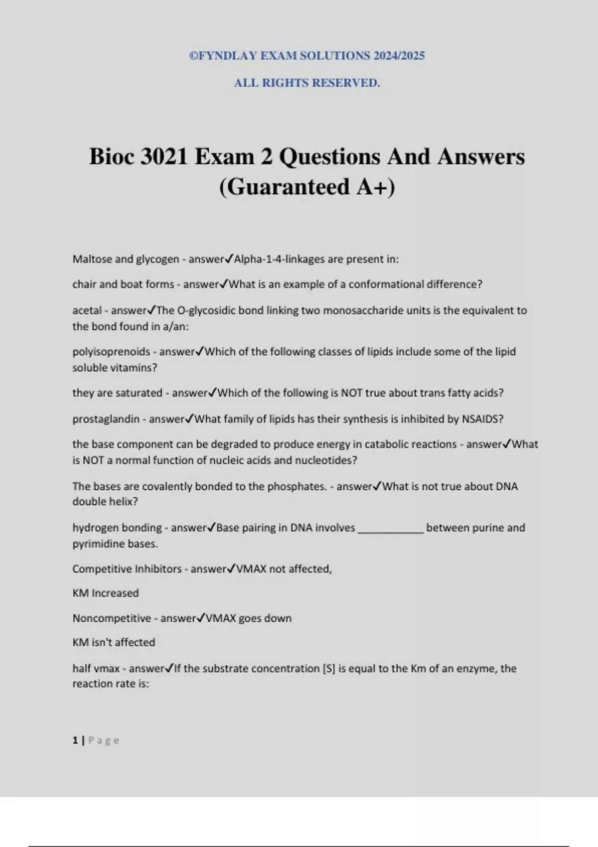 BIOC 3021 Exam Bundle With Verified And Updated Questions And Correct Answers.