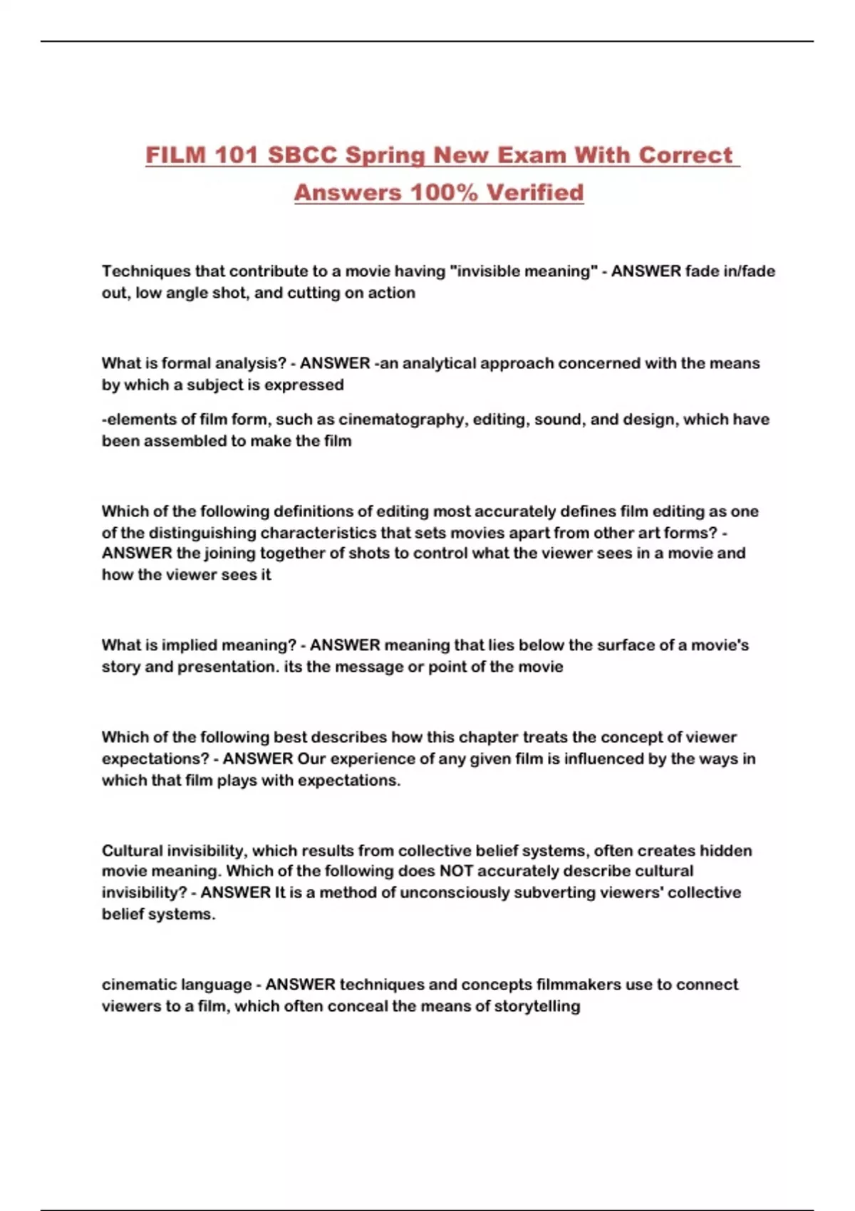 FILM 101 SBCC Spring New Exam With Correct Answers 100% Verified