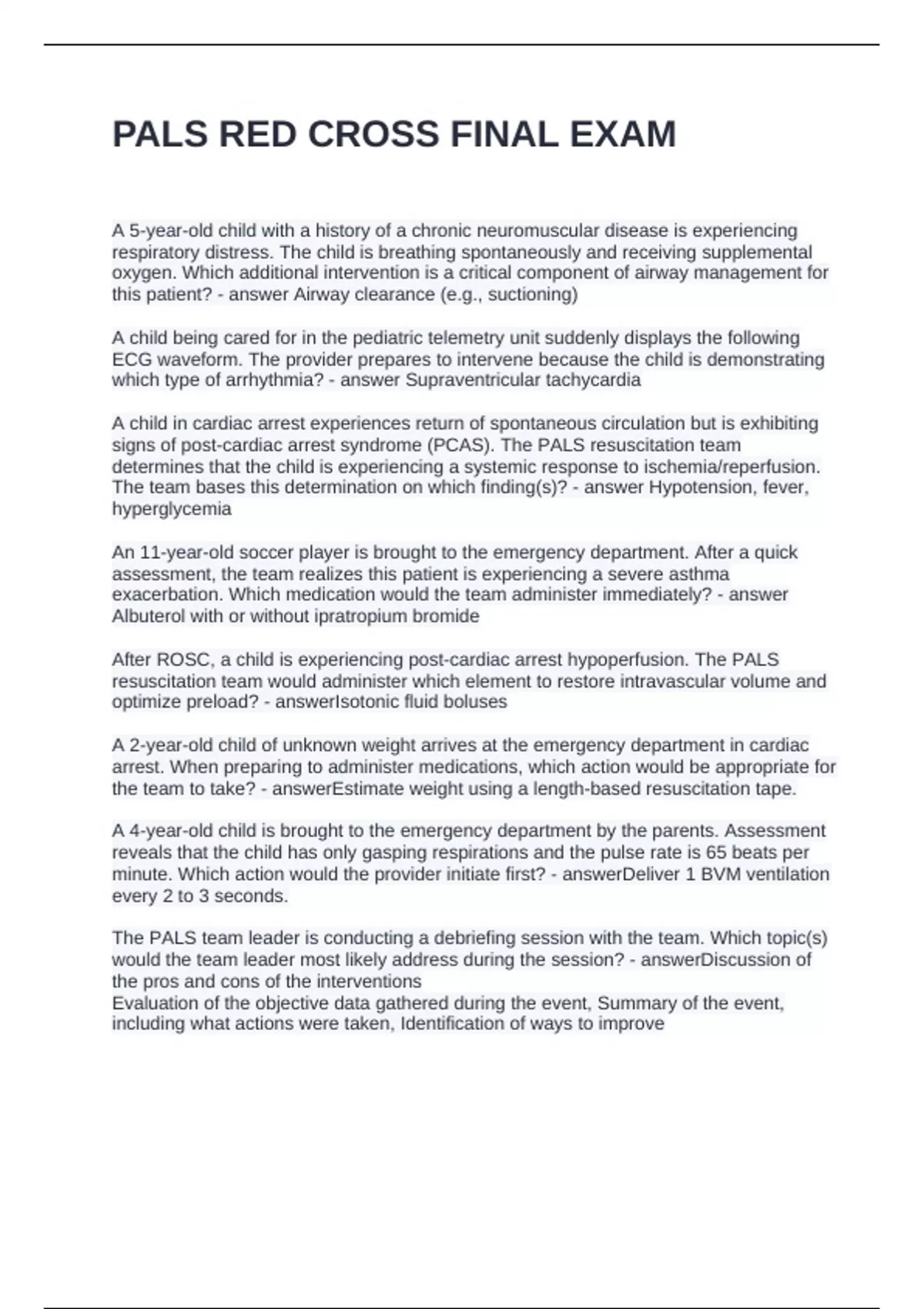 Exam (elaborations) PALS version B Questions and Answers 100% Solved Exam (elaborations) PALS (2). Systematic Approach Questions and Answers 100% Solved Exam (elaborations) PALS Vital signs Questions with Solutions Exam (elaborations) PALS Instructor Questions and Answers 100% Solved Exam (elaborations) 50 PALS Questions Questions and Answ